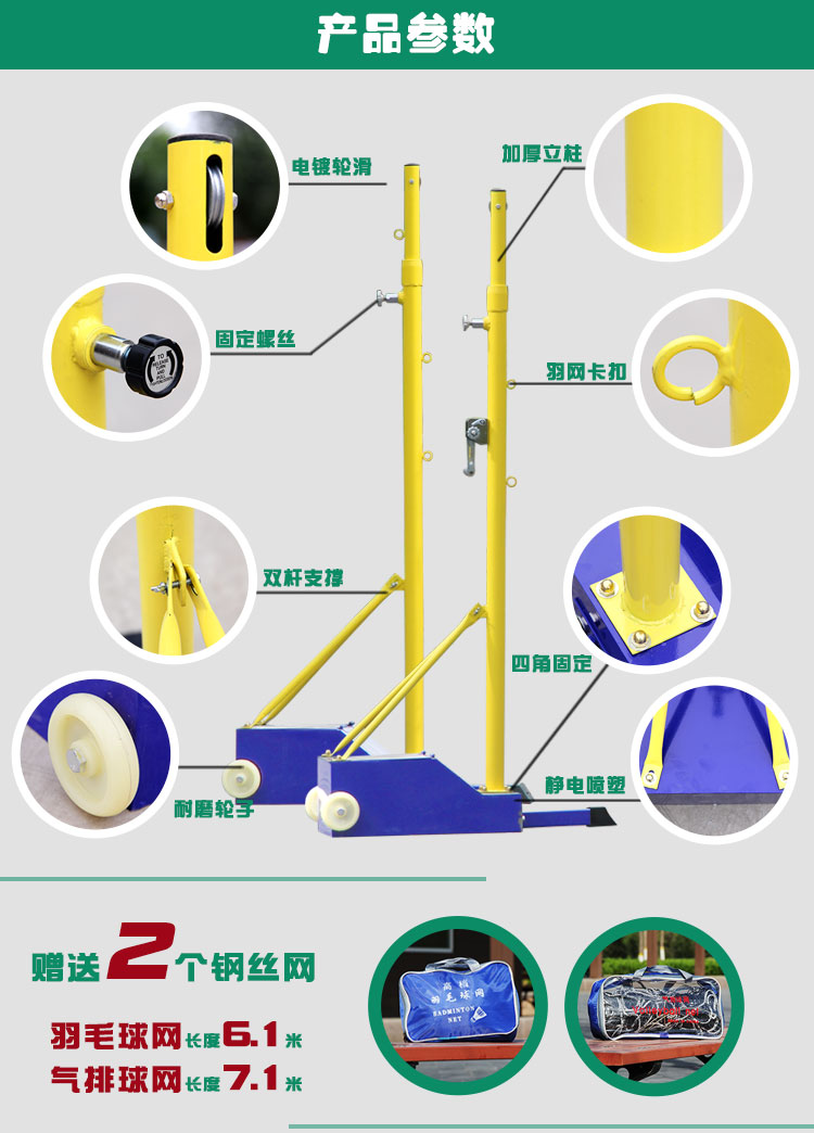 鑫奥瑞羽毛球网架便携式 气排球网架二合一多用单双打移动式球网柱 7.1m 羽毛球6.1米 两用气排球网架