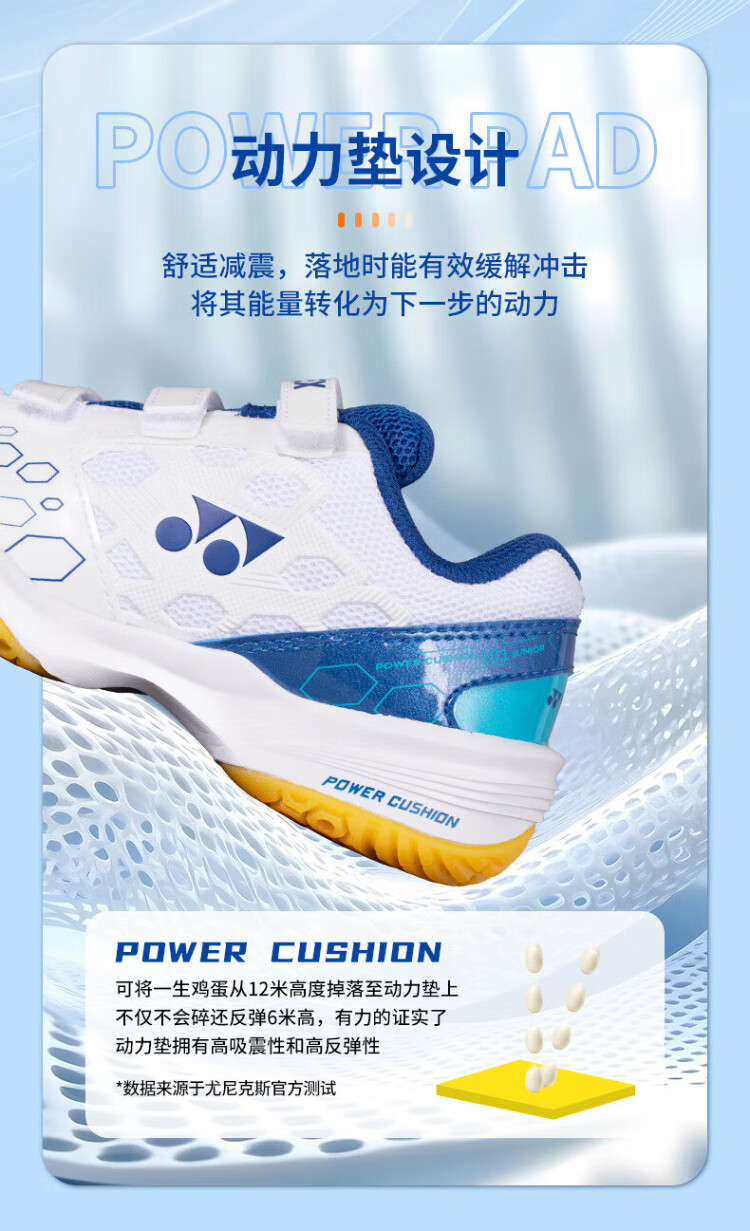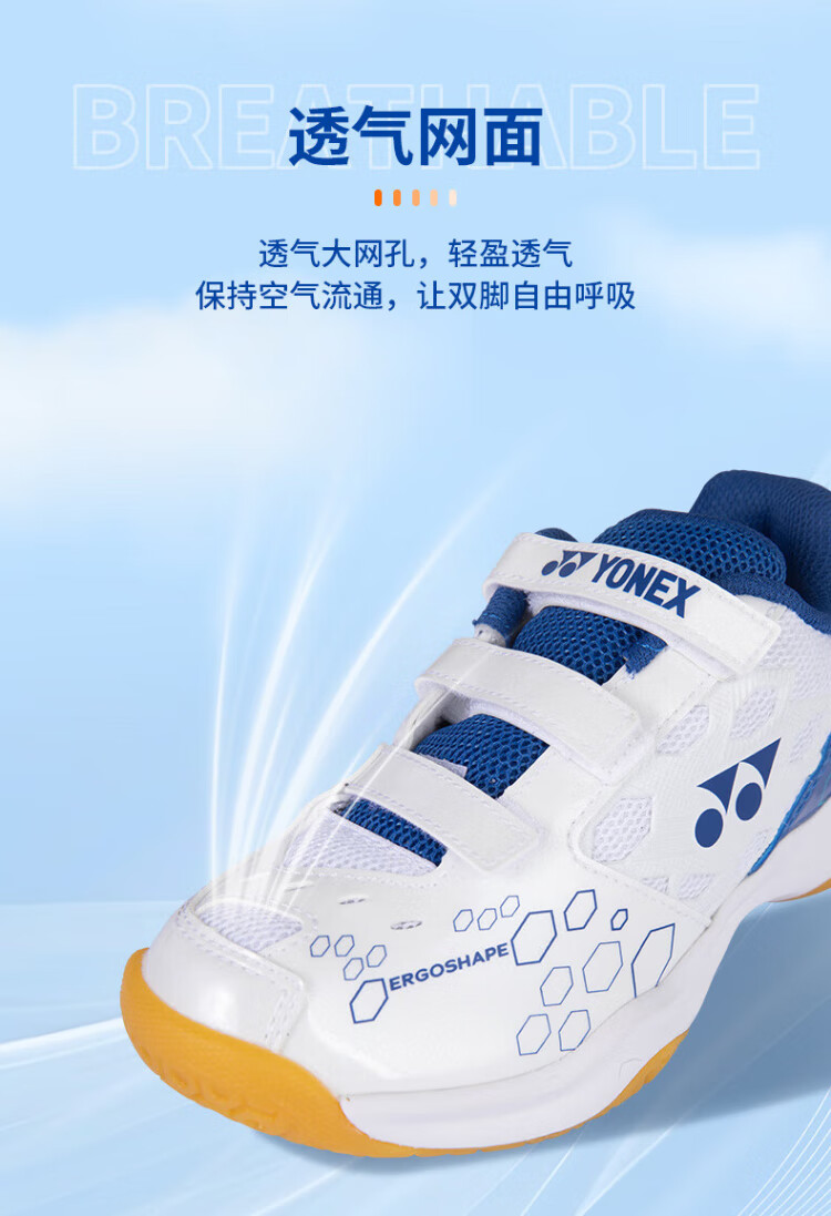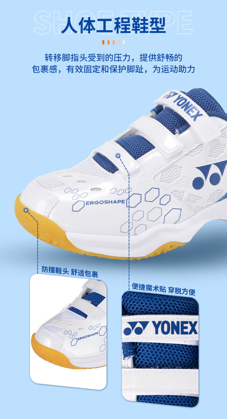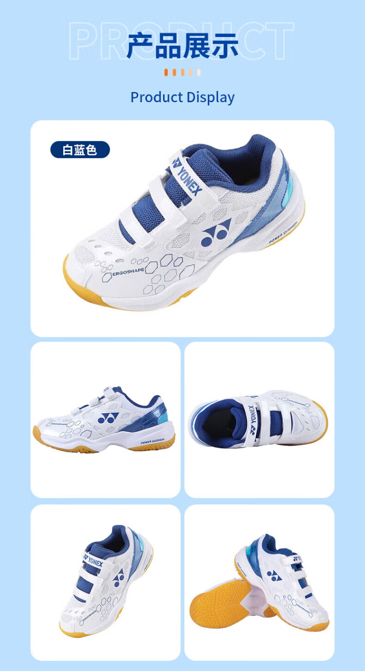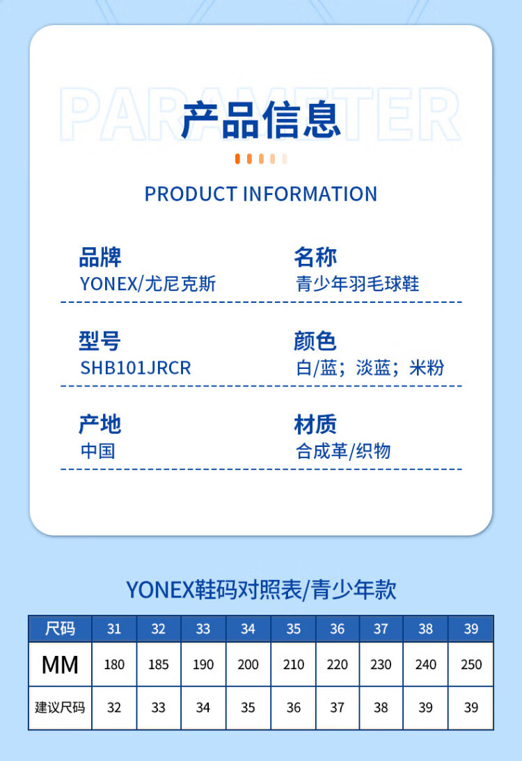YONEX尤尼克斯羽毛球鞋yy基础款舒适亲子款青少年SHB101JRCR白/蓝34码