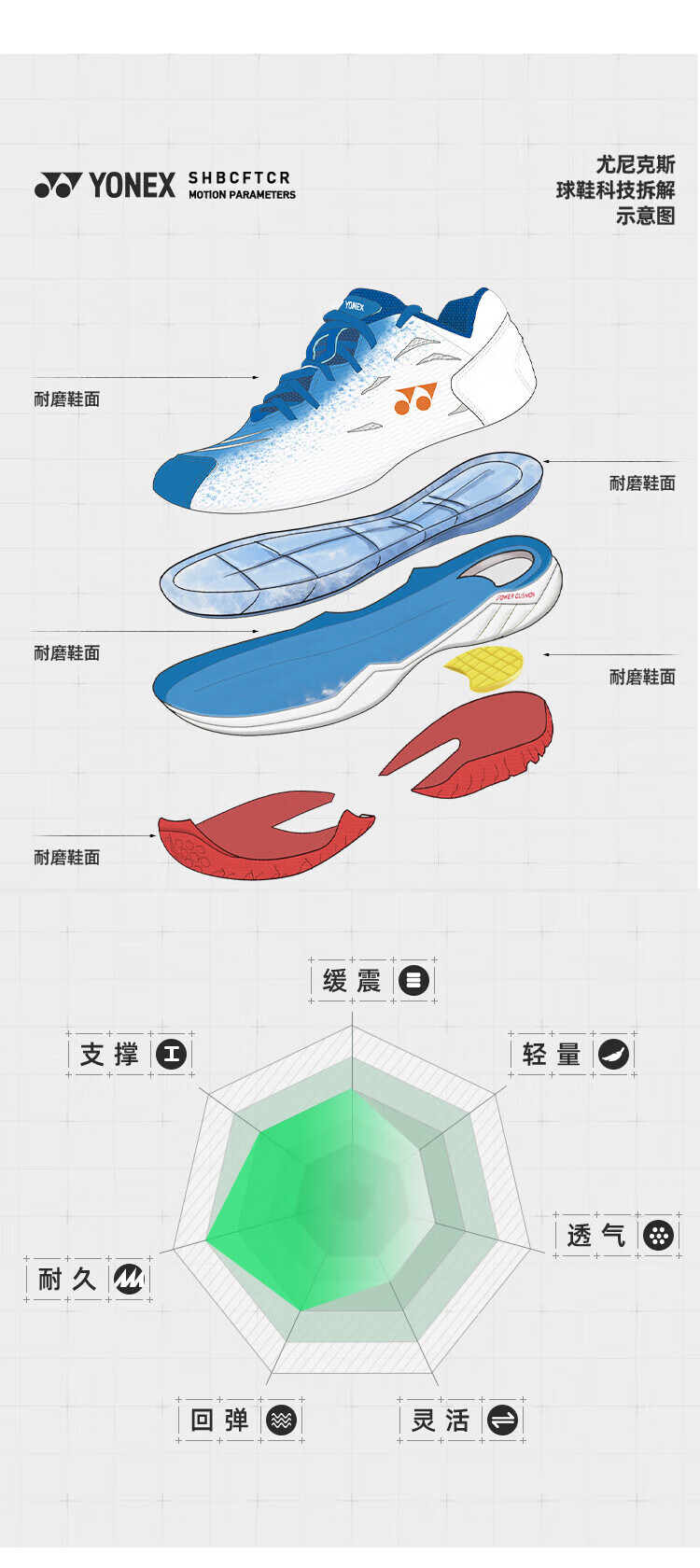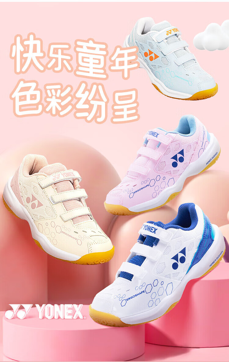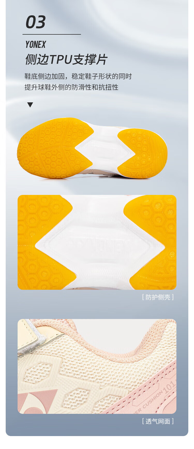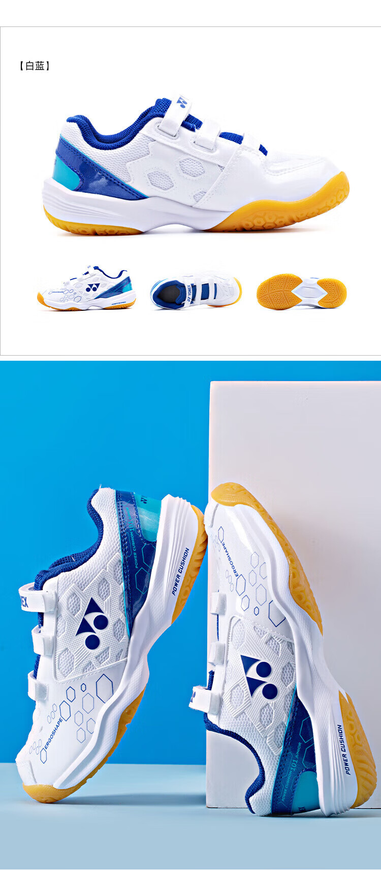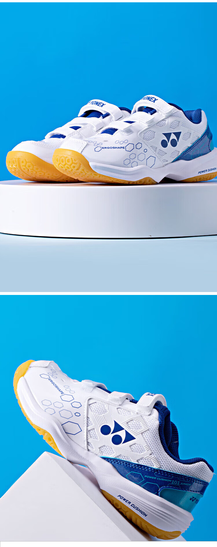 YONEX尤尼克斯羽毛球儿童鞋青少年学生比赛训练透气SHB101J 白蓝 36