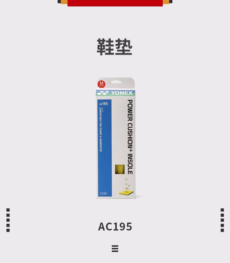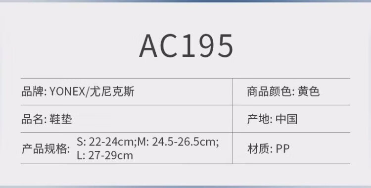 YONEX尤尼克斯专业防护舒适透气减震缓冲动力垫鞋垫AC195黄色L码
