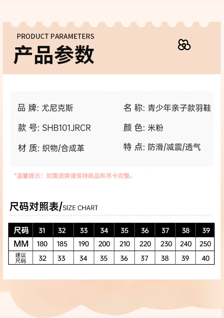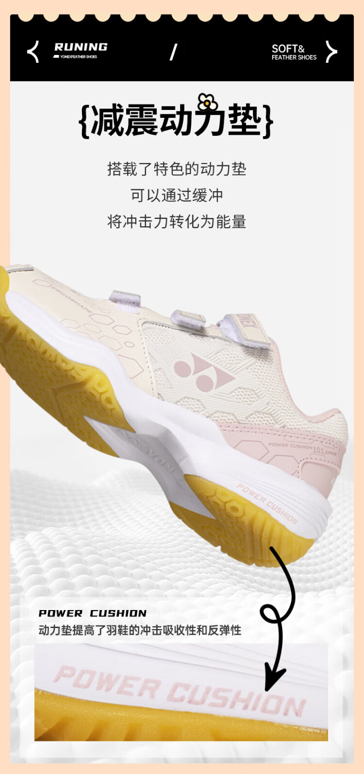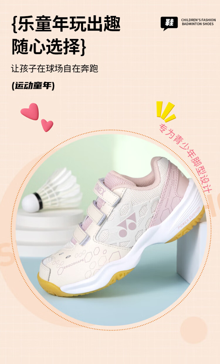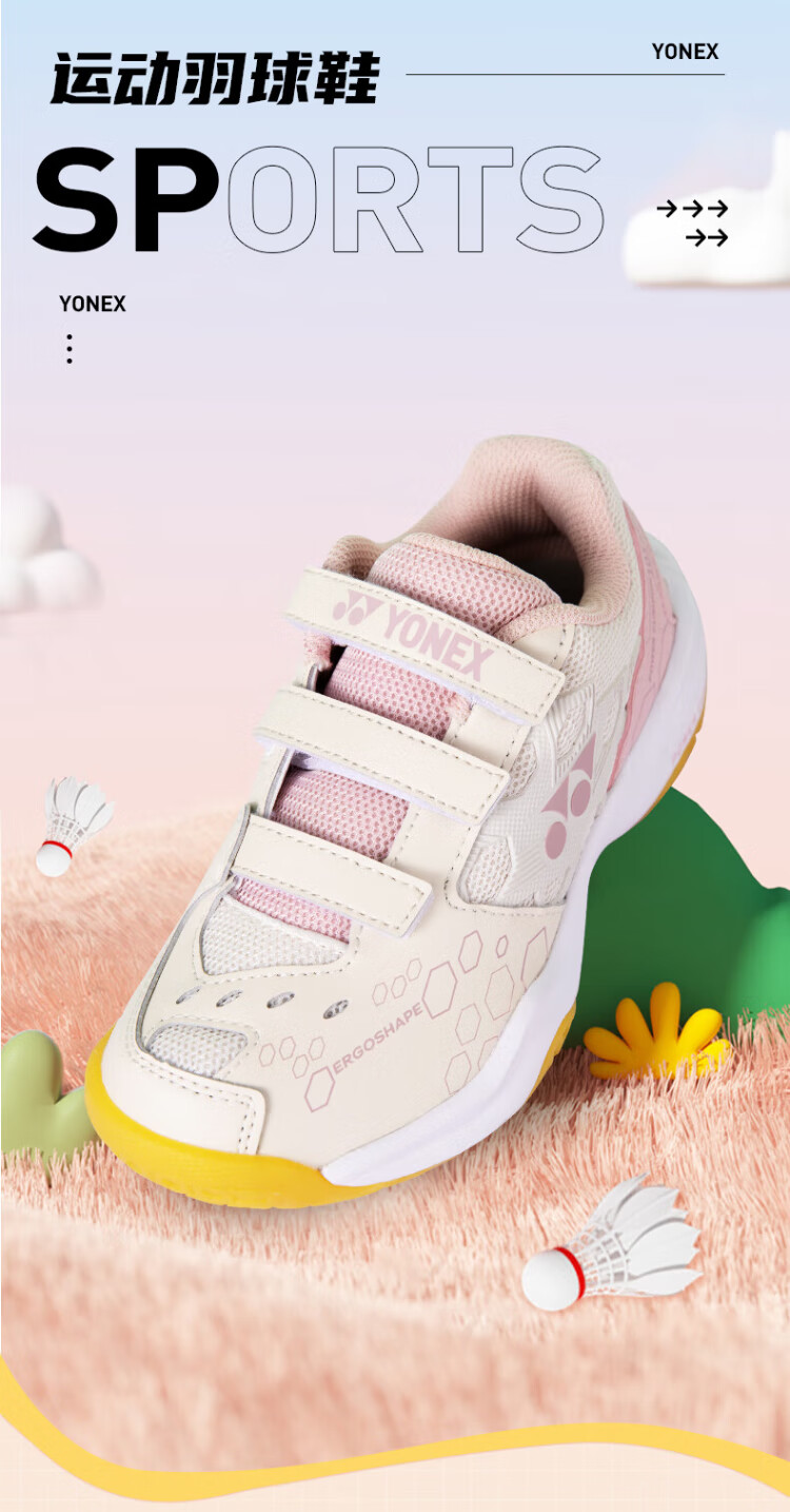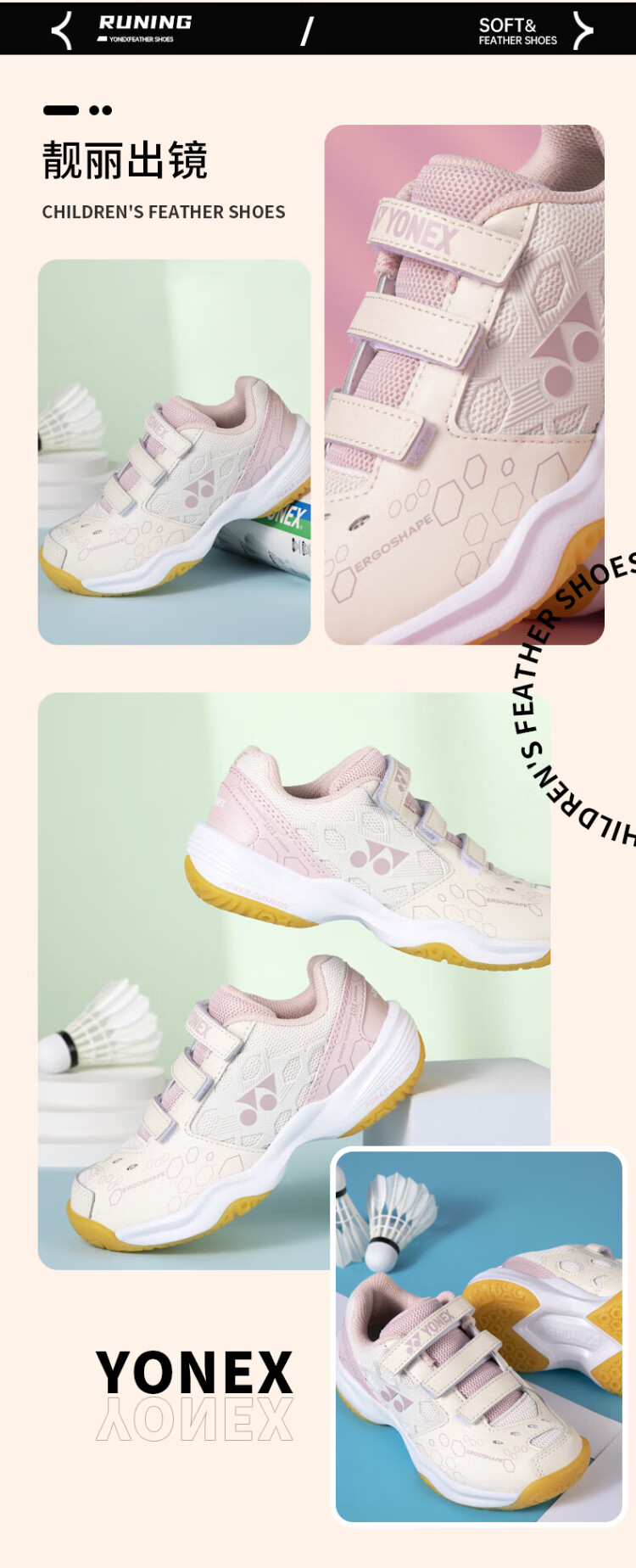 YONEX尤尼克斯羽毛球鞋yy基础款舒适亲子款青少年SHB101JRCR米粉33码