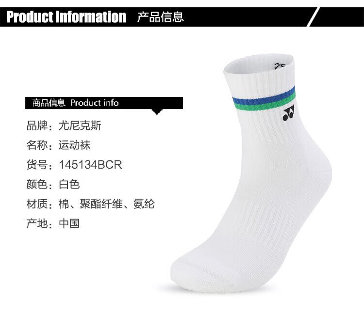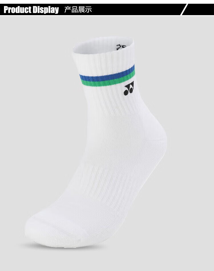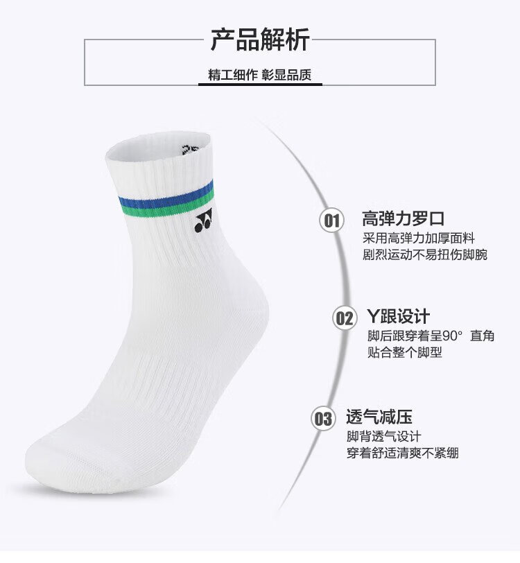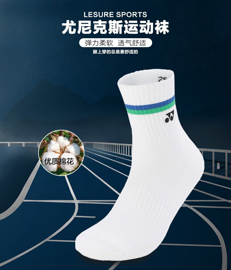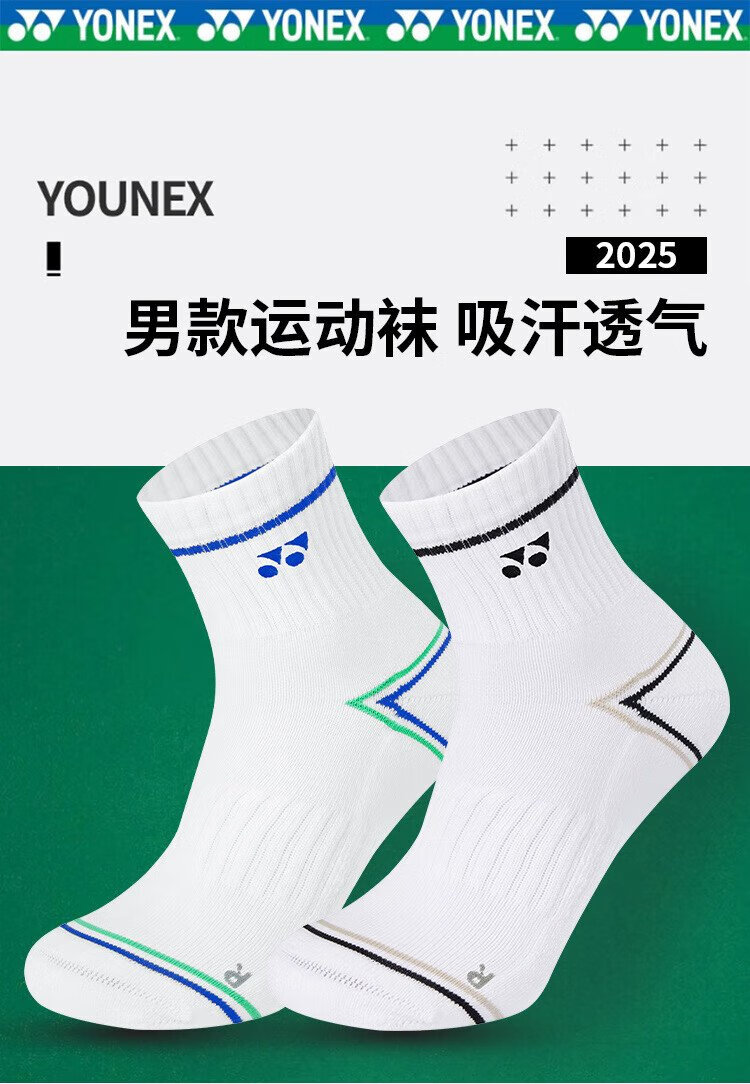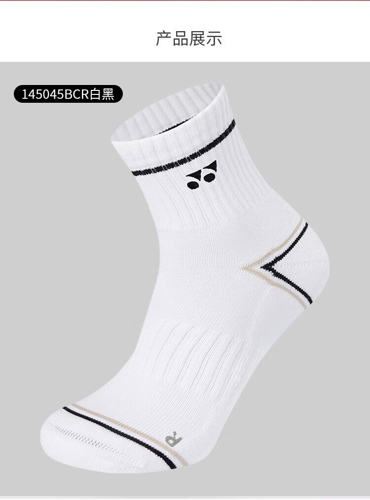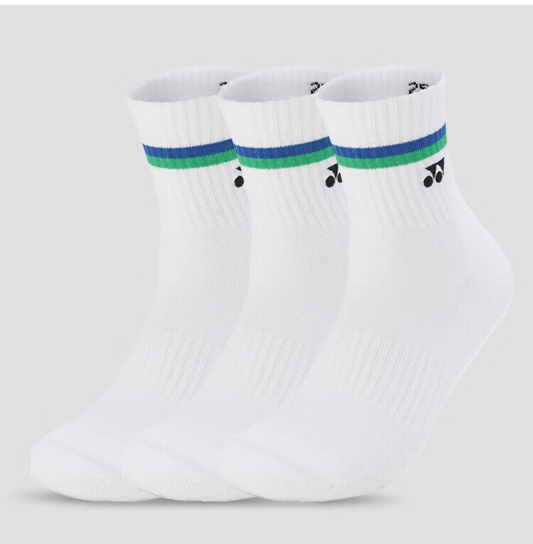 YONEX尤尼克斯羽毛球袜吸汗透气运动袜男款145134BCR白三双装