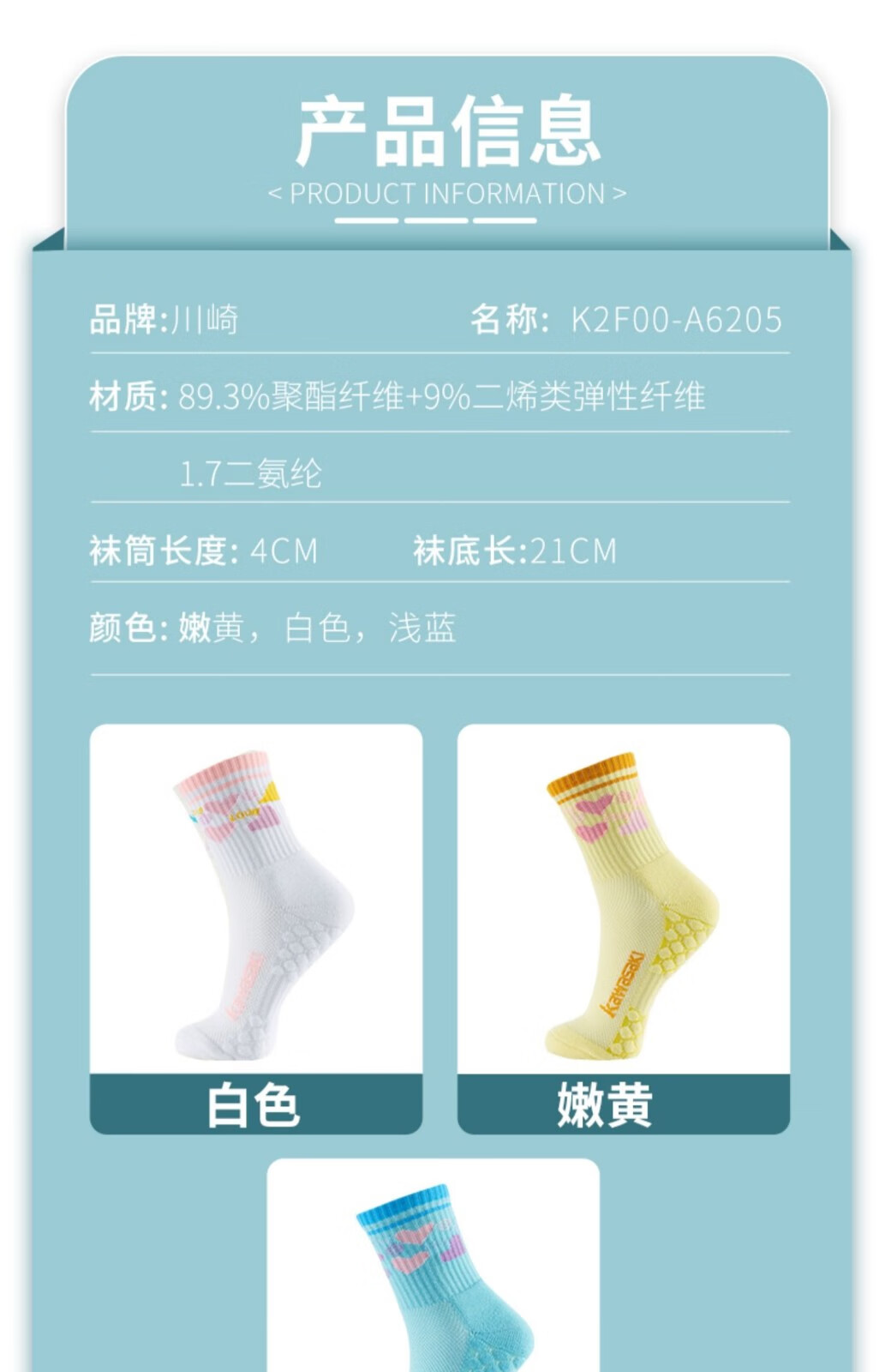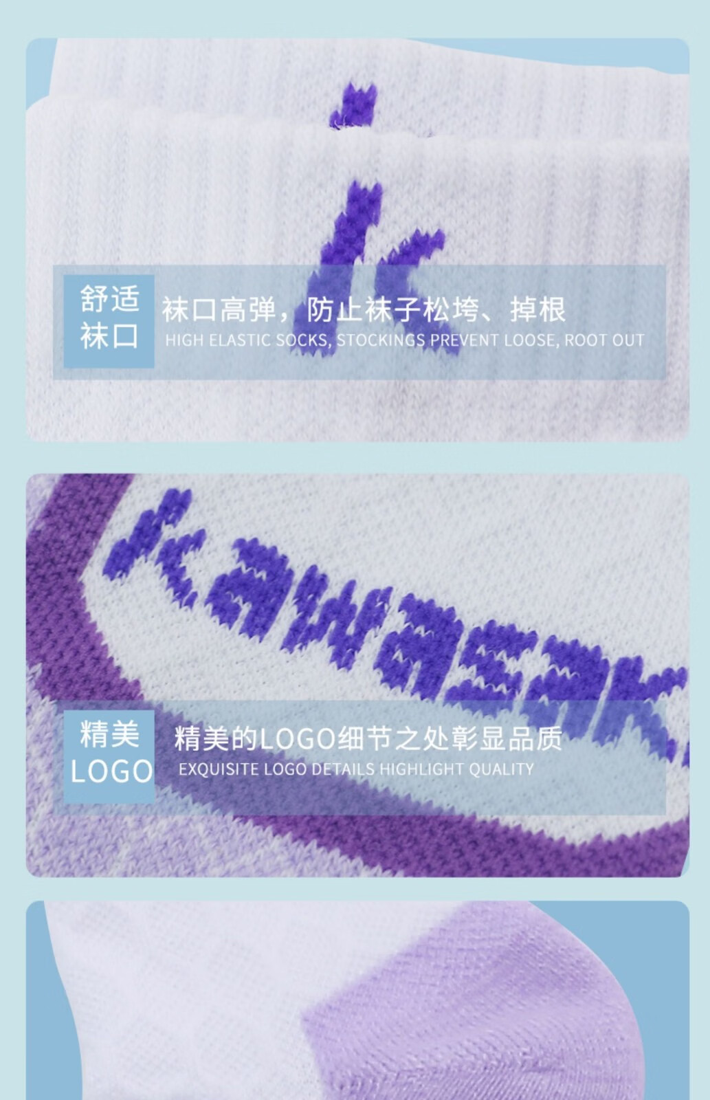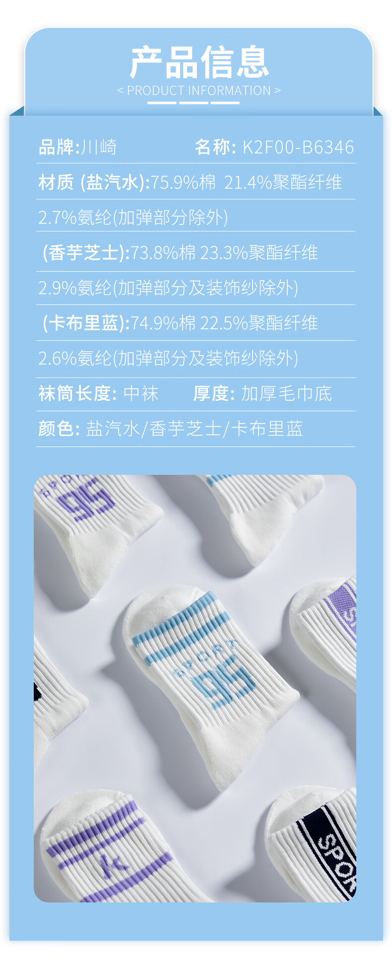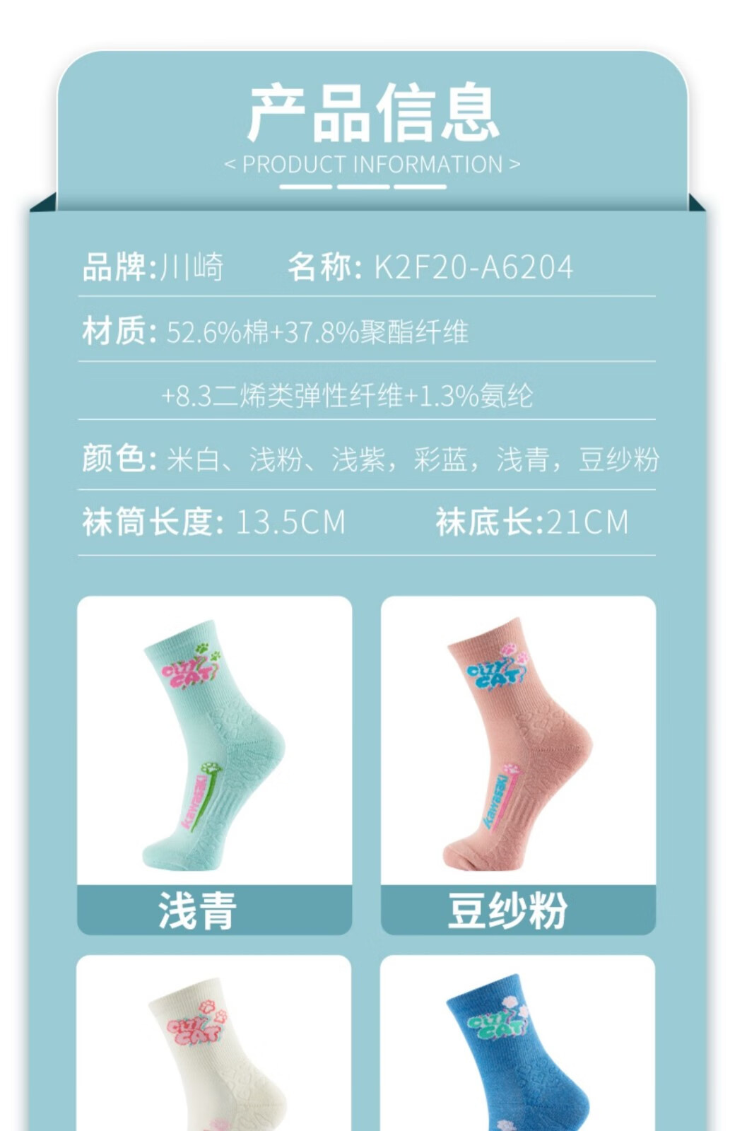 川崎(KAWASAKI)羽毛球运动袜女款跑步健身中短女袜子毛巾底吸汗透气3双装 R237D蓝/粉/紫(3双装)