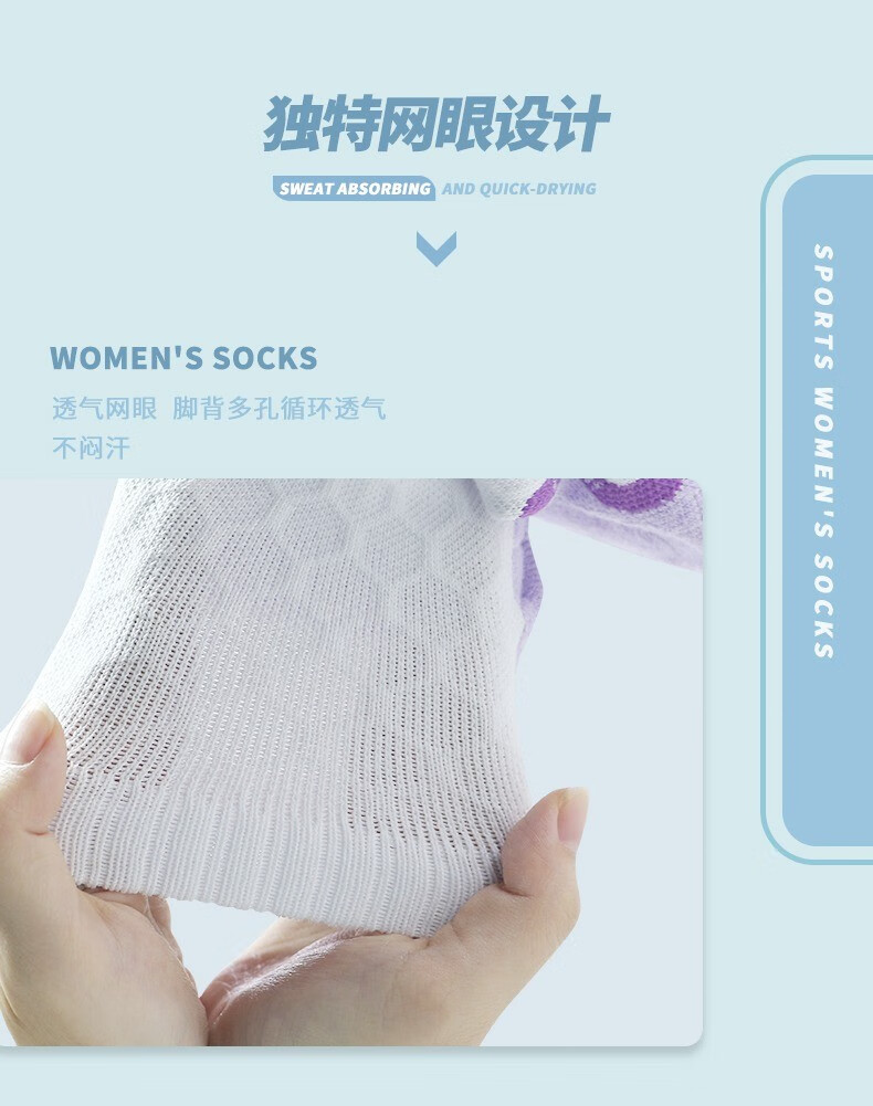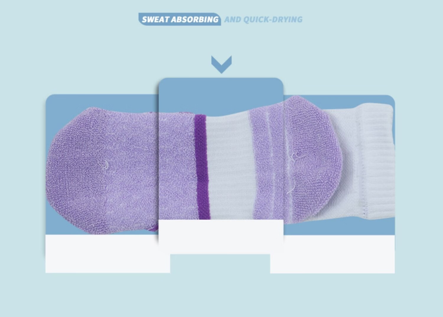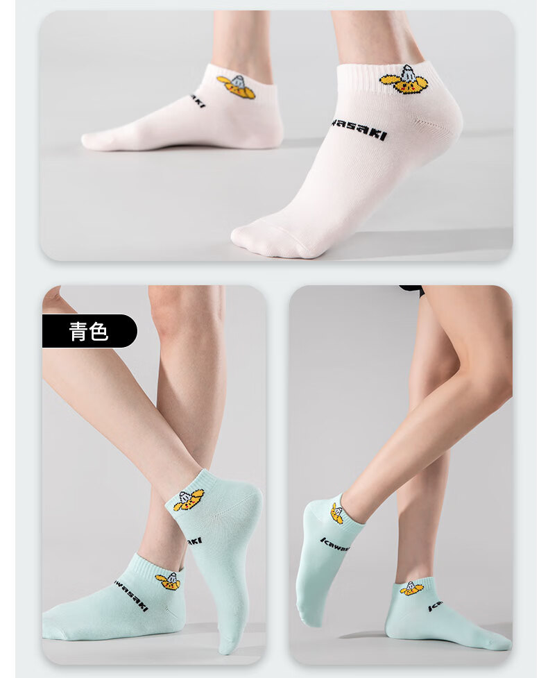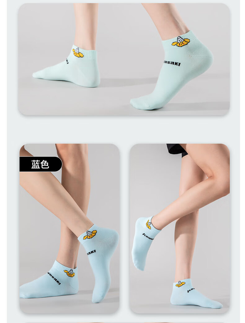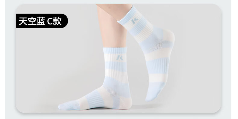 川崎(KAWASAKI)羽毛球运动袜女款跑步健身中短女袜子毛巾底吸汗透气3双装 R237D蓝/粉/紫(3双装)