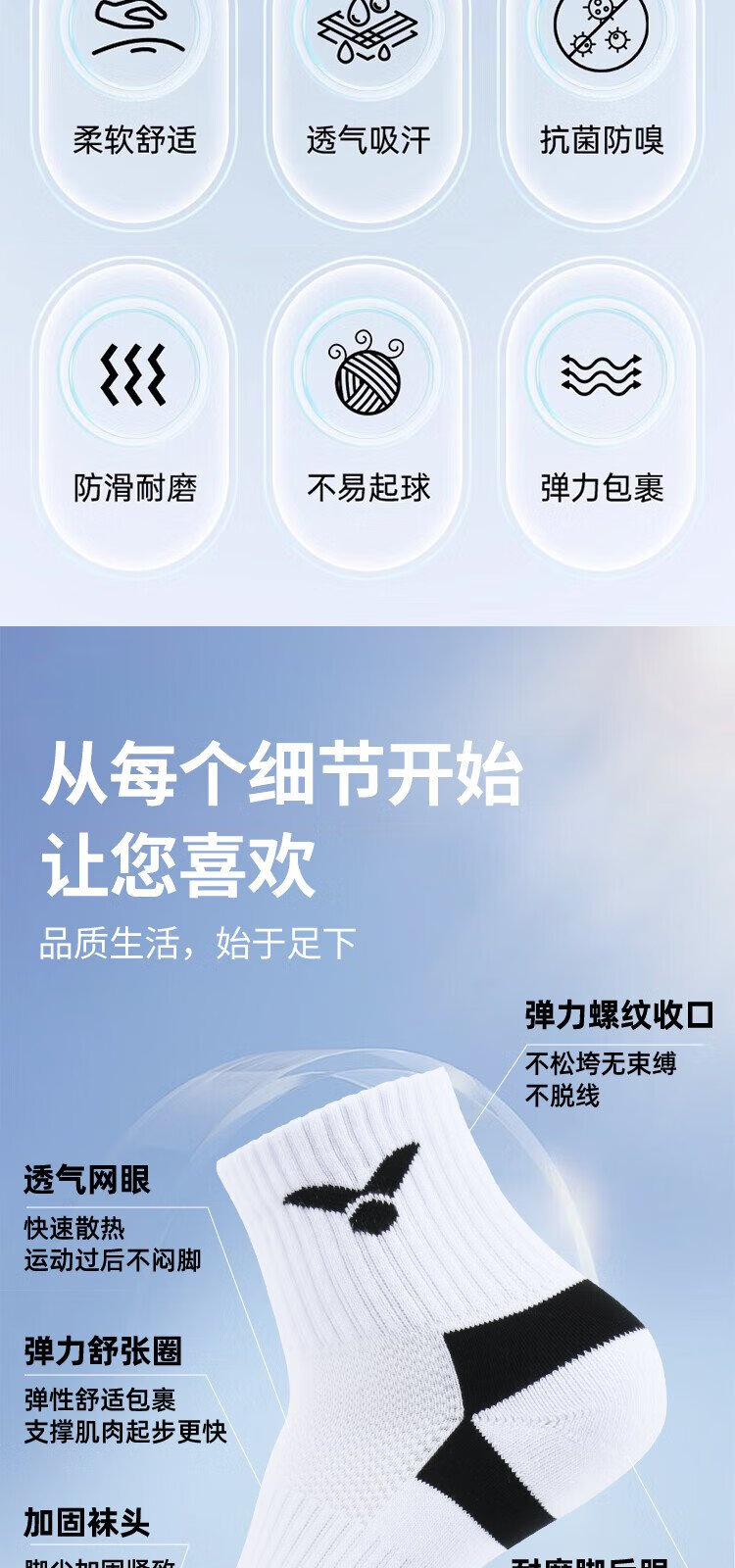 VICTOR Victory chaussettes de badminton pour hommes et femmes bas de serviette absorbant la transpiration et respirant SK9400-3/AFM/L 3 paires blanc