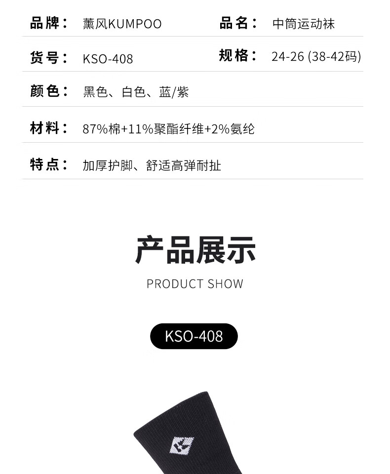 薰风(KUMPOO)羽毛球袜 加厚毛巾底篮球袜吸汗跑步袜熏风透气训练袜羽毛球袜 KSO-408 白色
