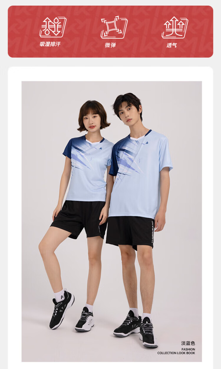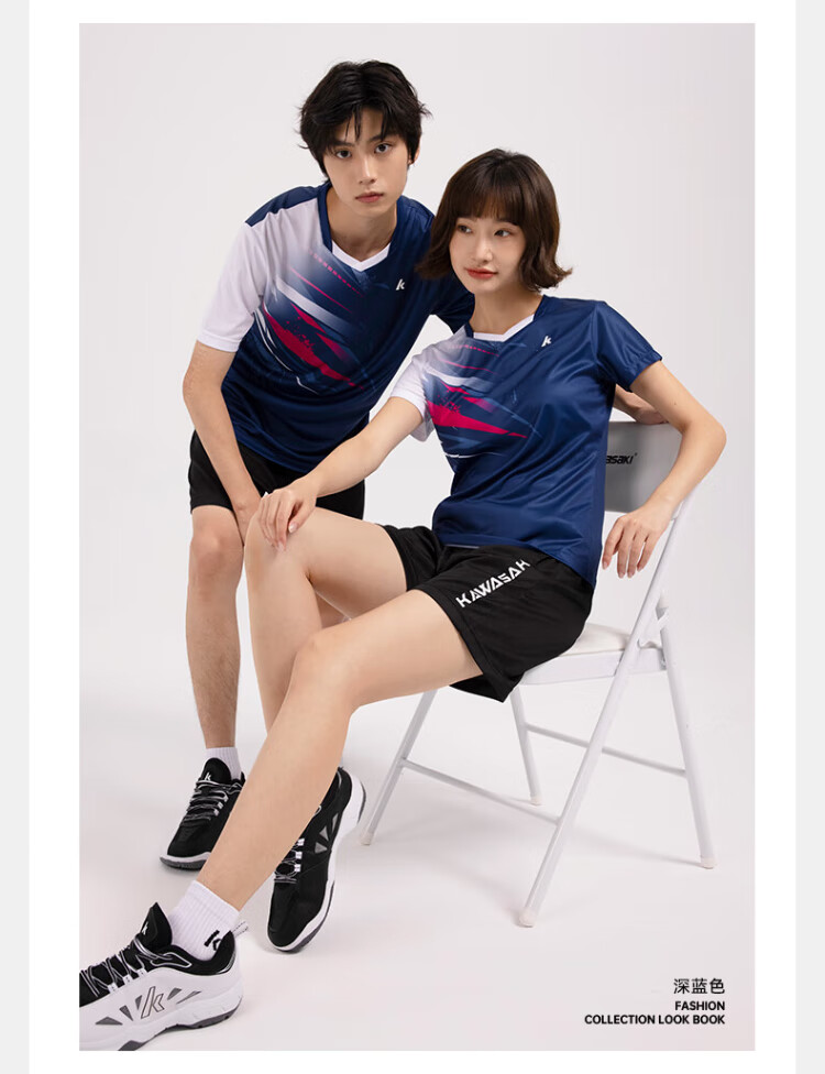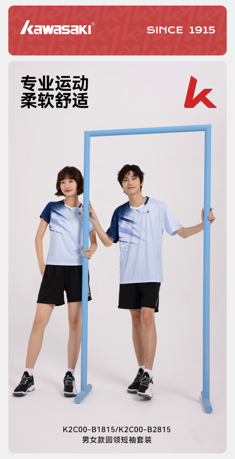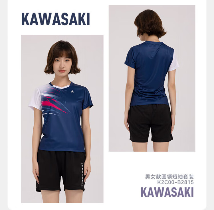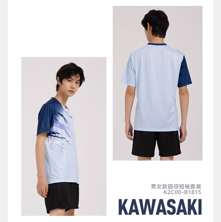 kawasaki川崎羽毛球服男款专业运动圆领短袖+短裤套装B1815 淡蓝色 2XL
