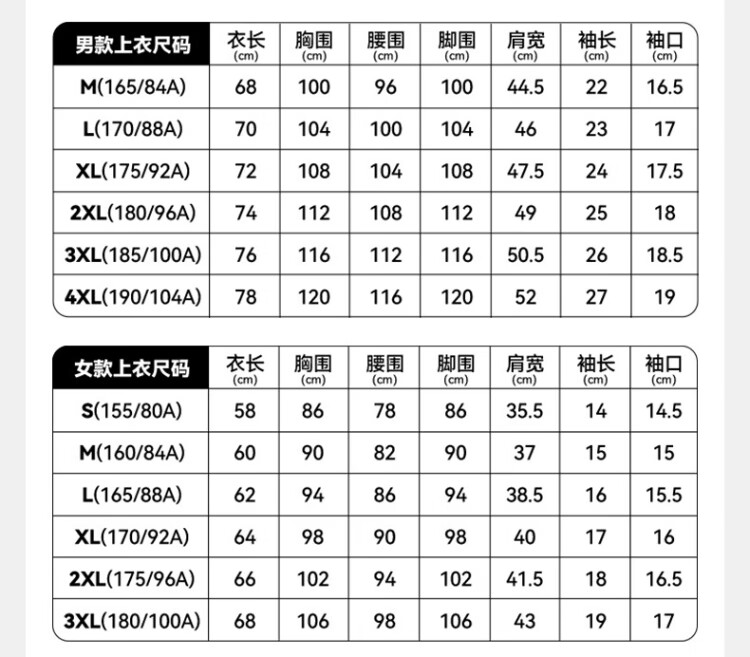 China (cm) 160-165/84-86 165-170 / 88-90 167-172 / 92-96 168-173 / 98-102 170-176 / 106-110