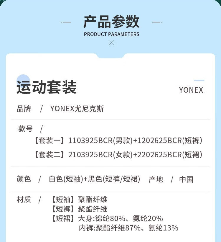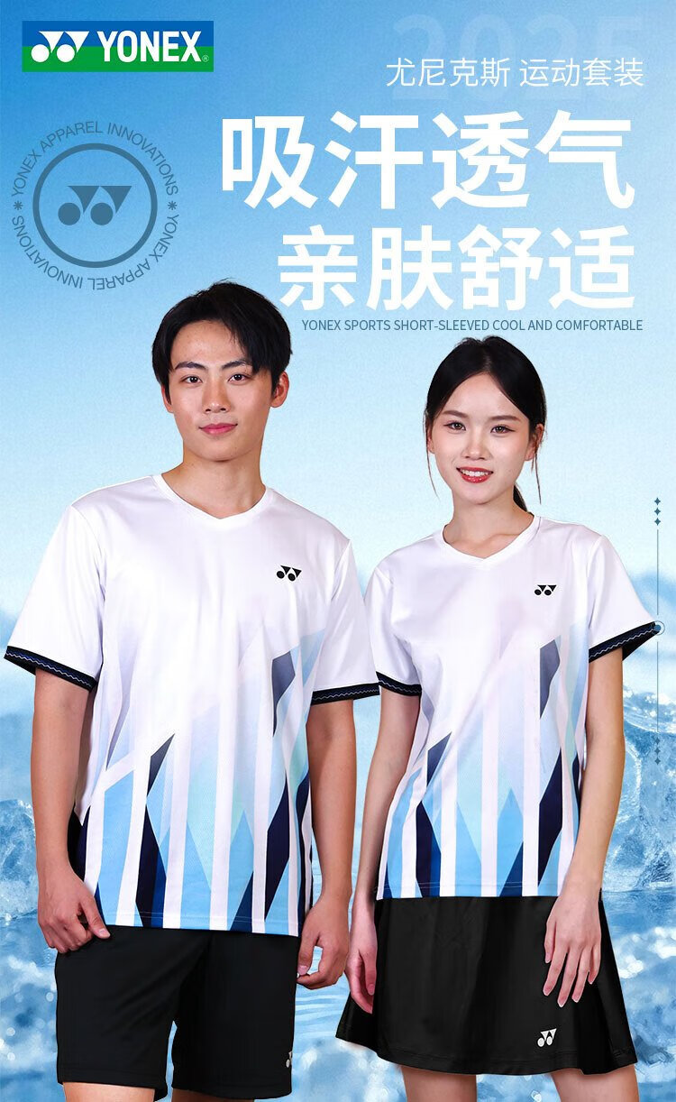YONEX尤尼克斯羽毛球服跑步健身运动短袖短裙套装女2103925BCR白色O