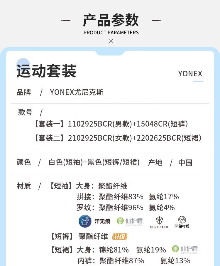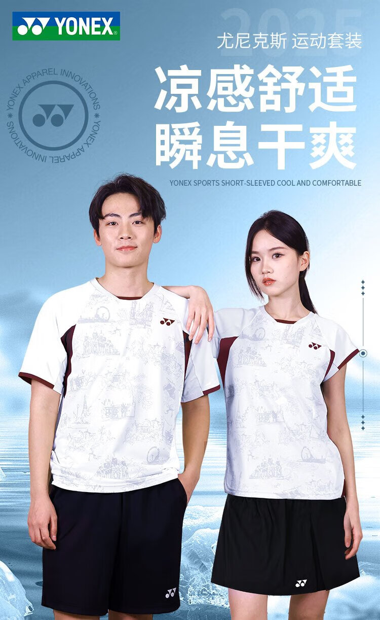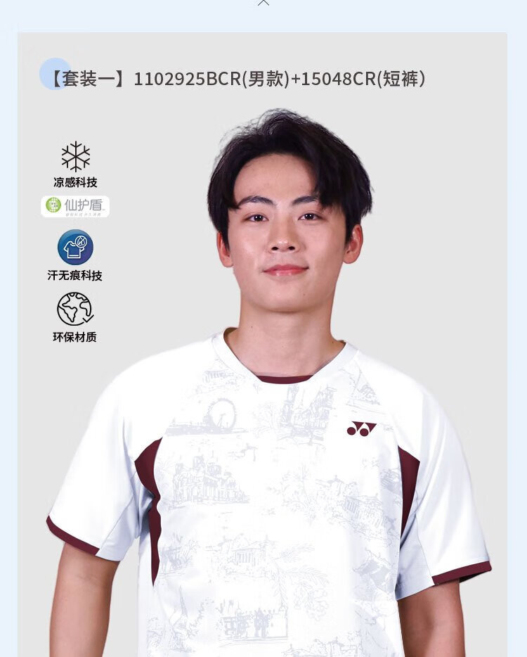YONEX尤尼克斯羽毛球服透气速干男款短袖+短裤套装1102925BCR白色L