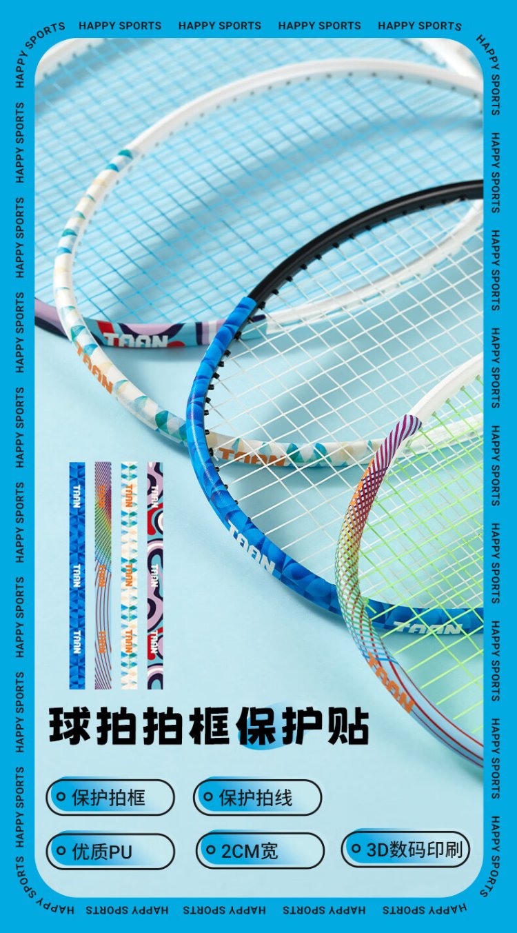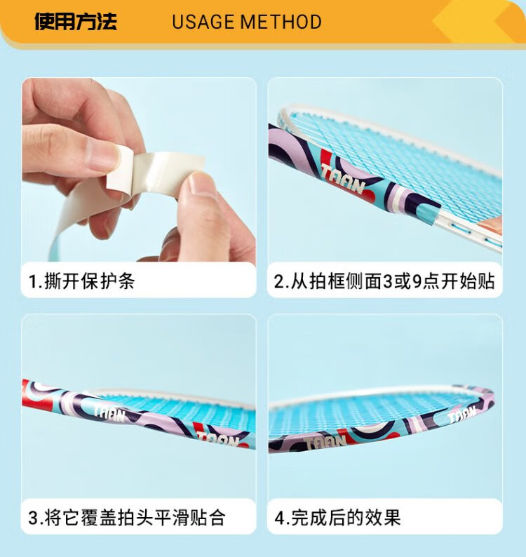 TAAN泰昂羽毛球拍保护贴边框防磨防断线防刮框拍头贴C29混色四条装