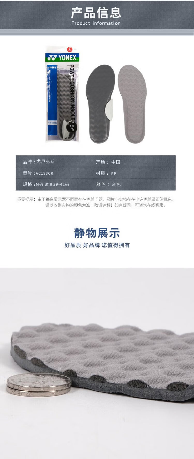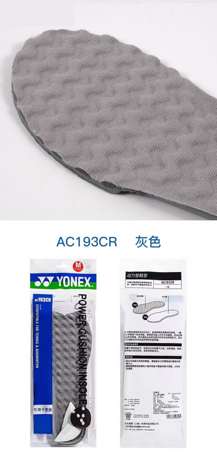 YONEX badminton insoles professional power pad support arch anti-slip high elastic AC193CR gray M