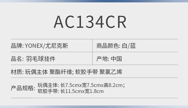 YONEX尤尼克斯钥匙扣羽毛球挂件可爱卡通挂饰礼物AC134CR白蓝