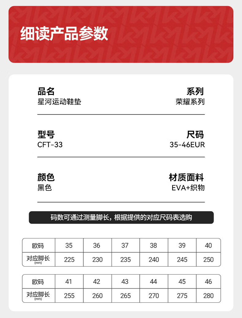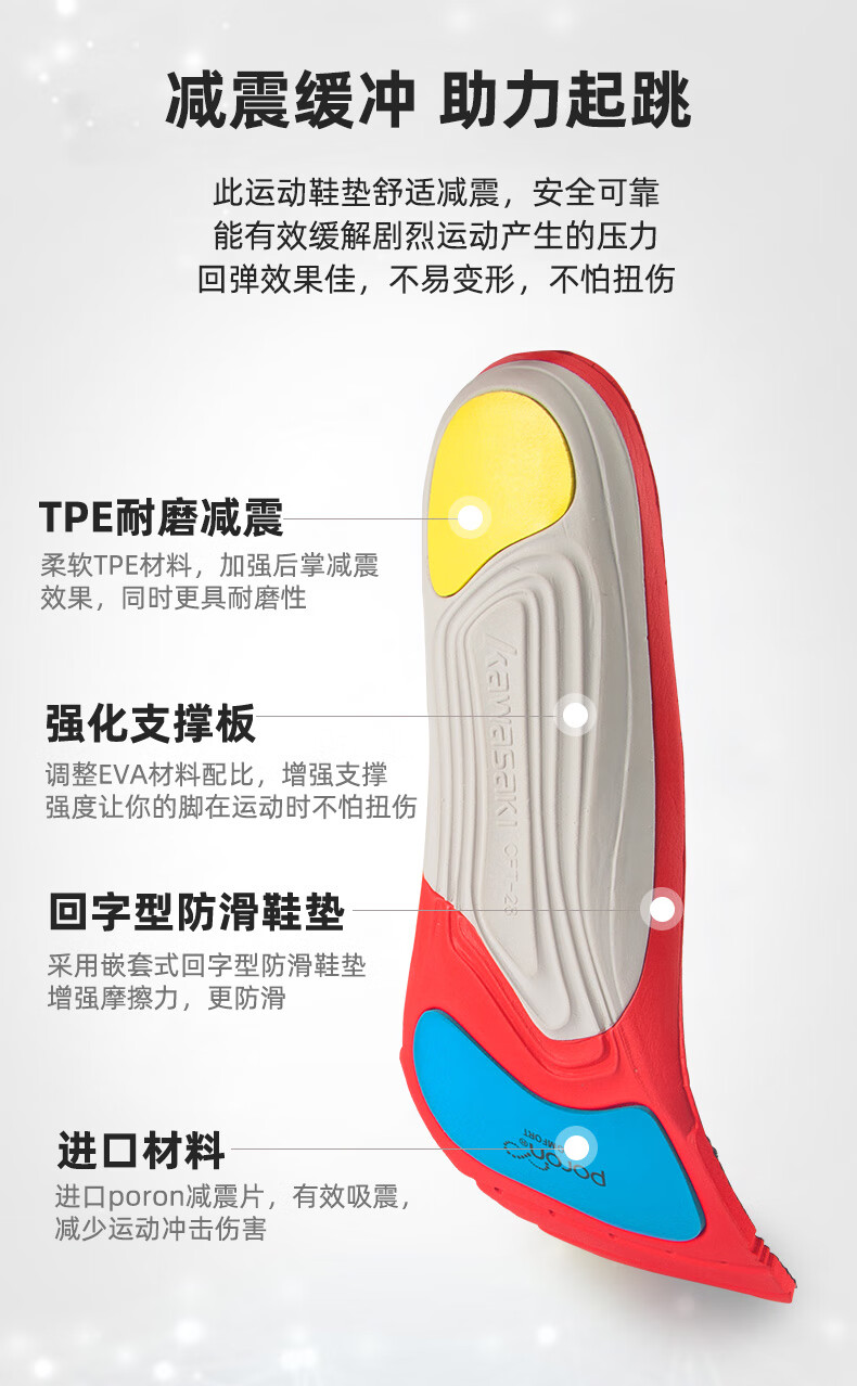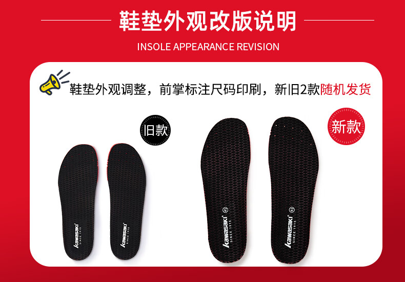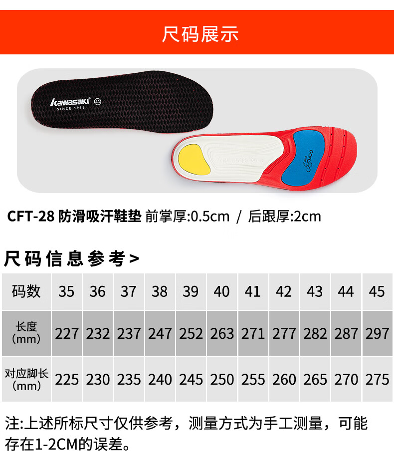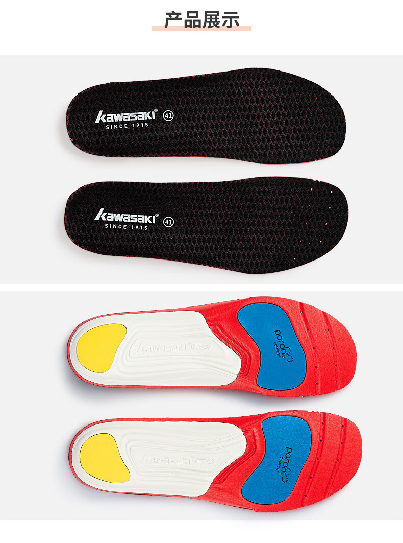 川崎(KAWASAKI)羽毛球运动鞋垫男女吸汗透气减震软底舒适夏季鞋垫 高弹运动鞋垫 CFT-28 红色/黑色 42