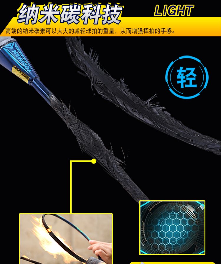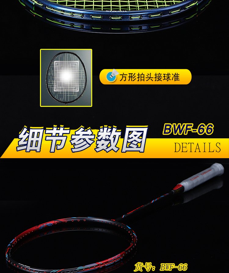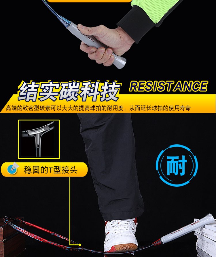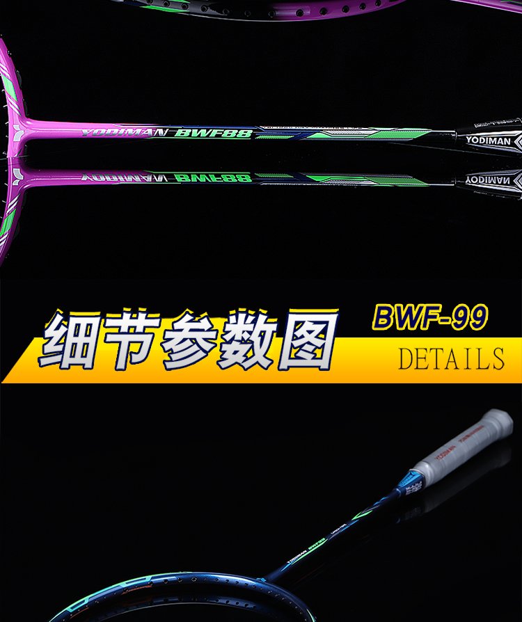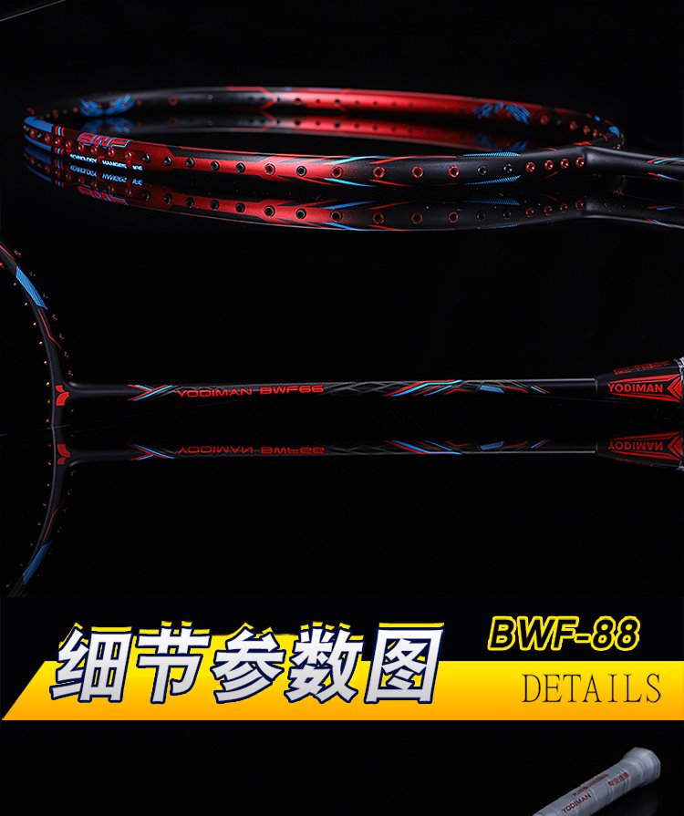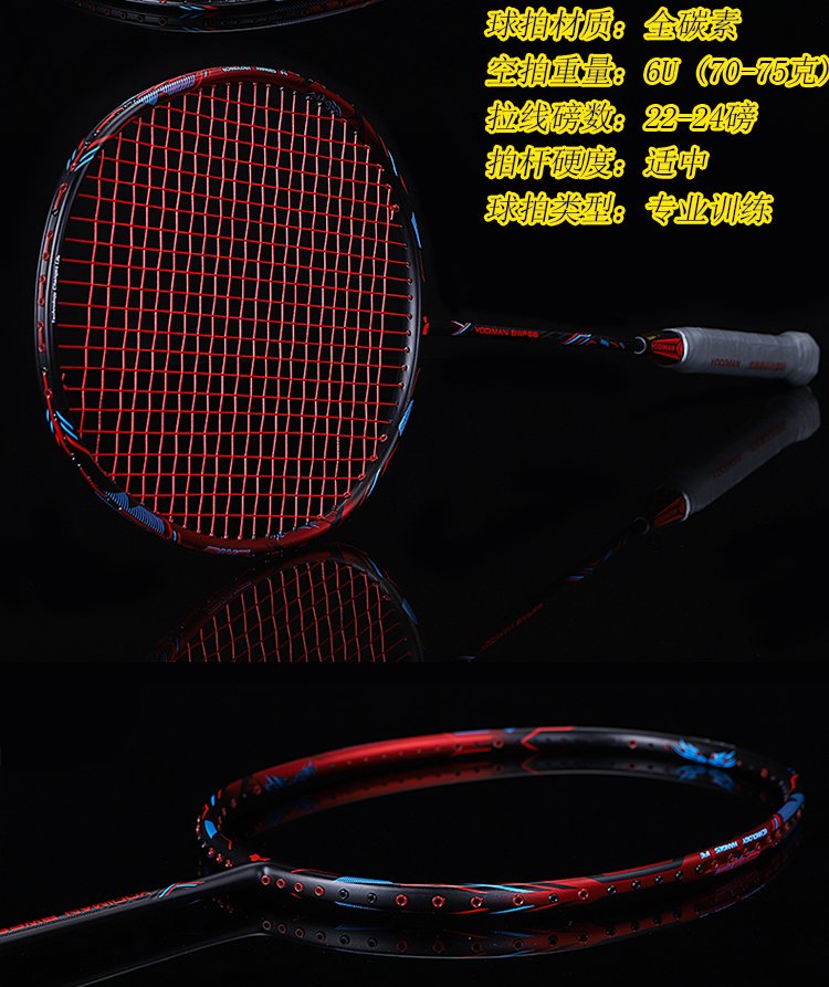 尤迪曼全碳素羽毛球拍超轻6U单拍BWF-66(已穿线23磅缠好手胶)