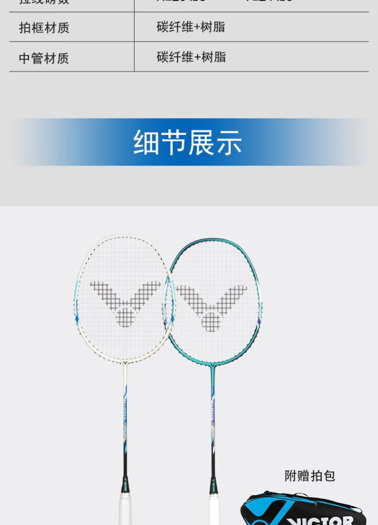 威克多(VICTOR)自营旗舰店羽毛球拍对拍轻量耐打男女入门户外全碳素双拍DF001