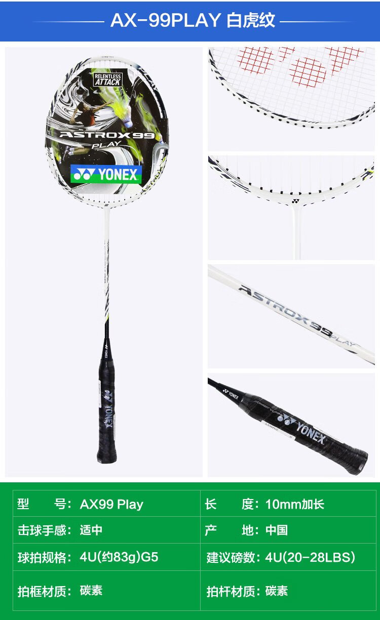 YONEX尤尼克斯羽毛球拍全碳素训练比赛天斧AX99PLAY白4U5已穿线附手胶