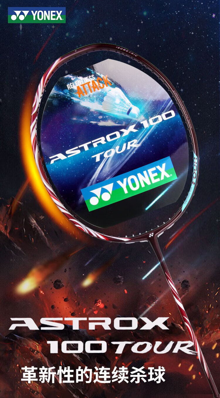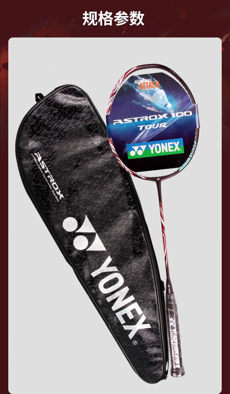 YONEX尤尼克斯羽毛球拍全碳素进攻单拍天斧AX100TOUR红4U5空拍附手胶