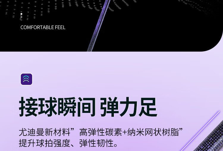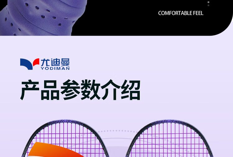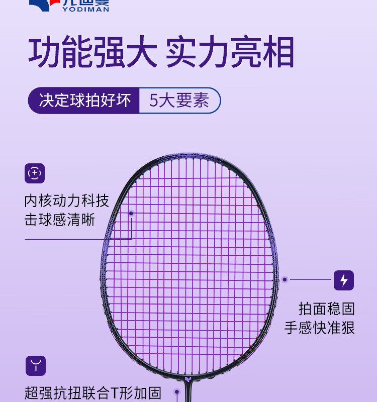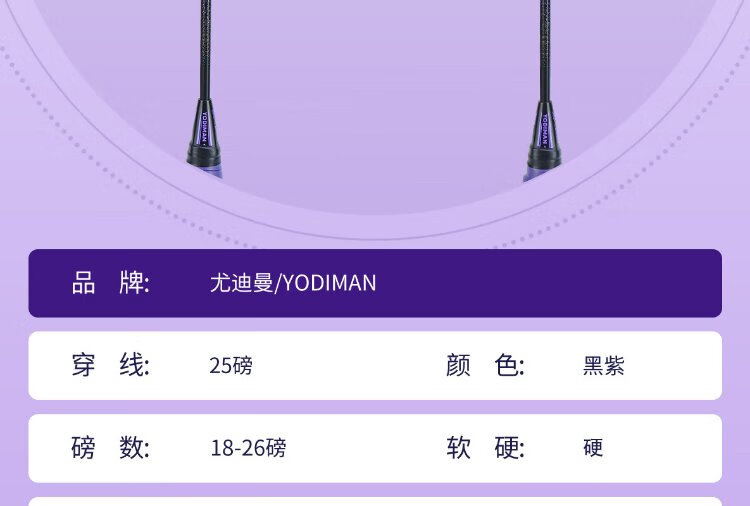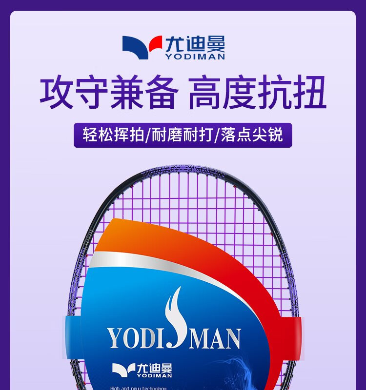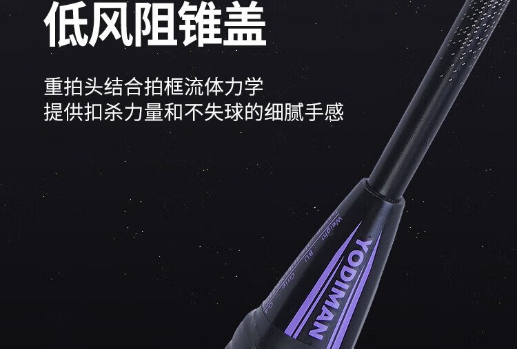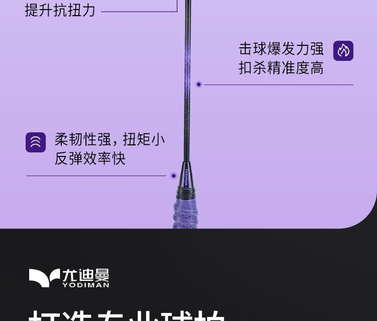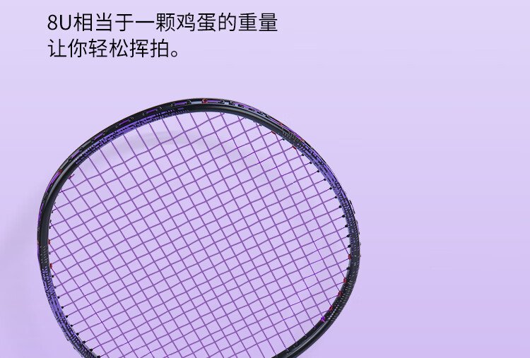 尤迪曼黑紫羽毛球拍全碳素超轻8U训练单拍1支装(已穿线25磅)