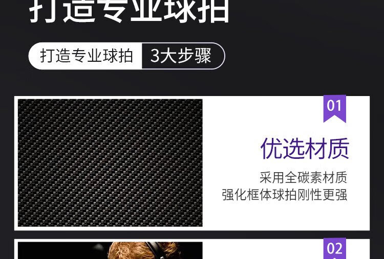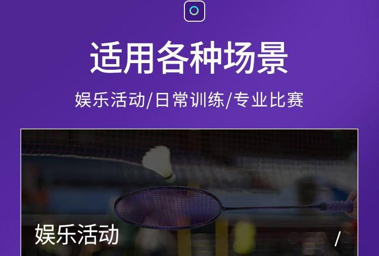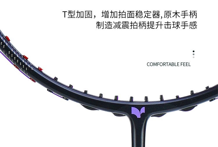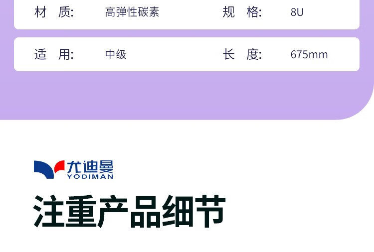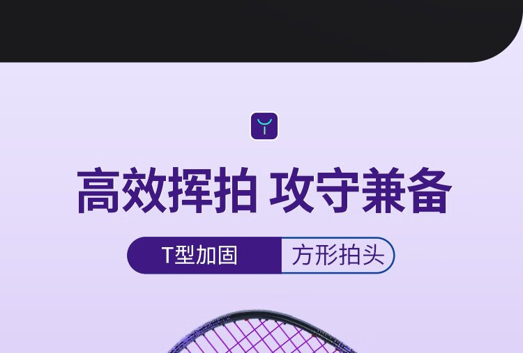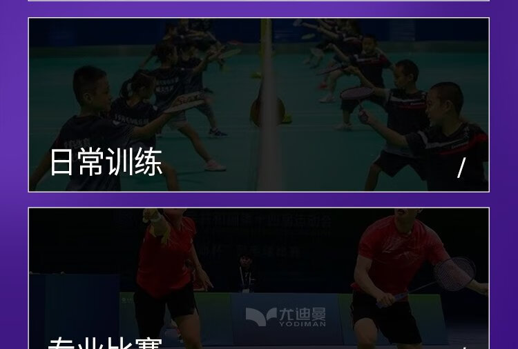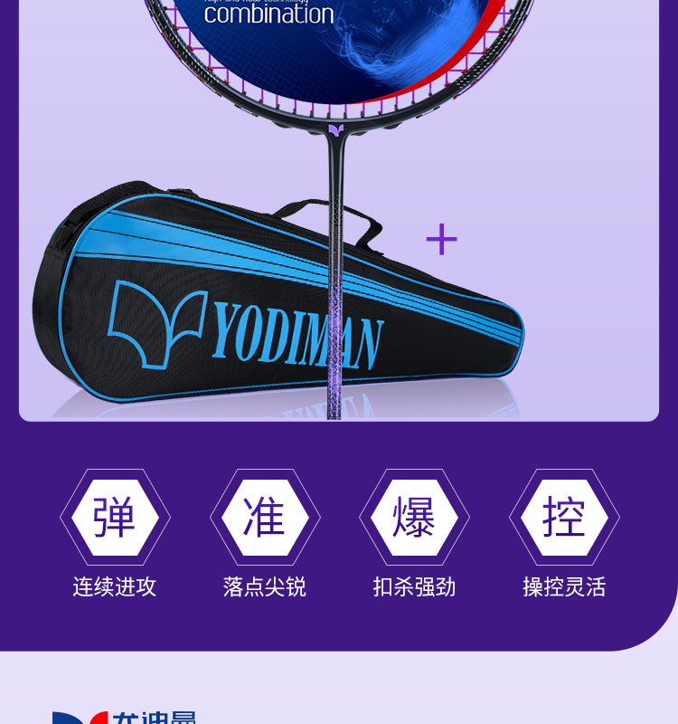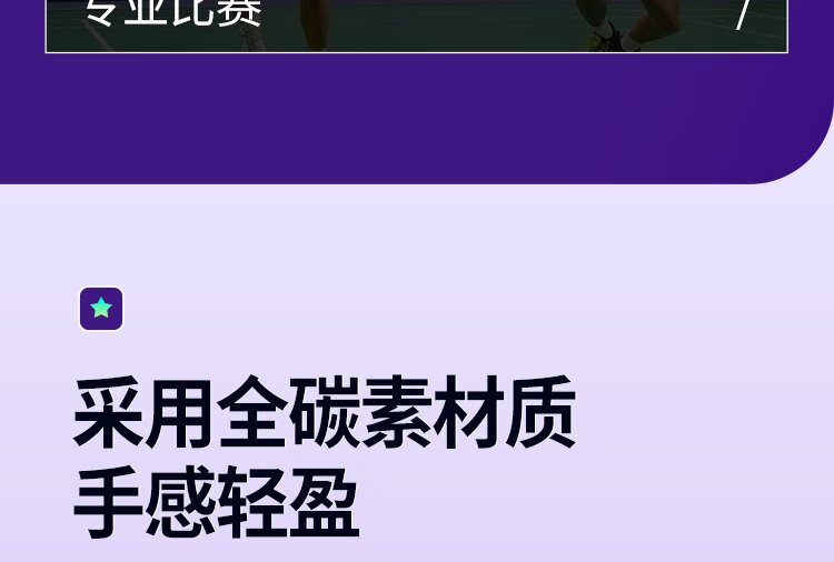 尤迪曼黑紫羽毛球拍全碳素超轻8U训练单拍1支装(已穿线25磅)