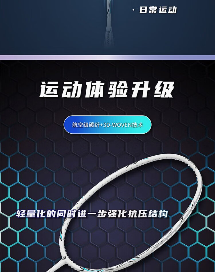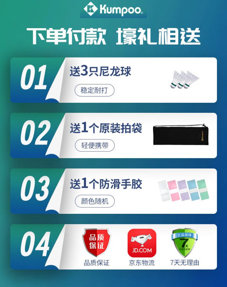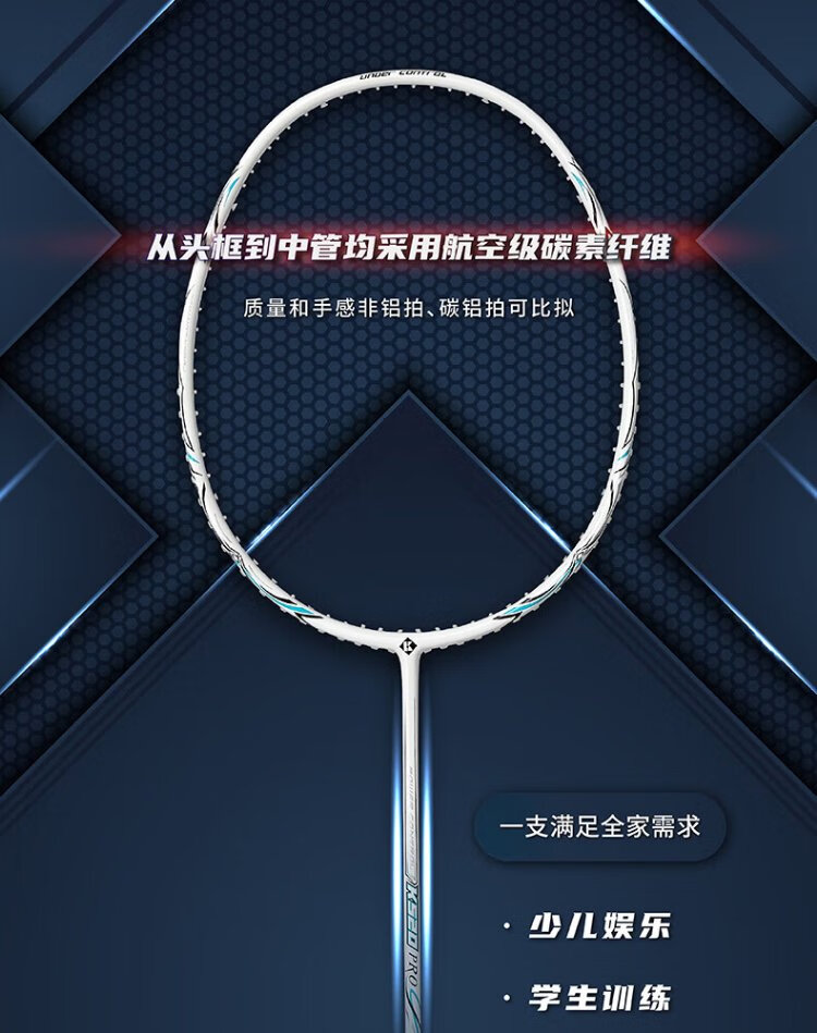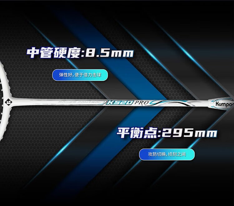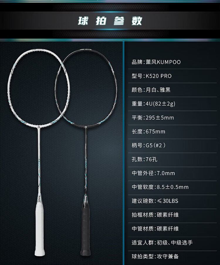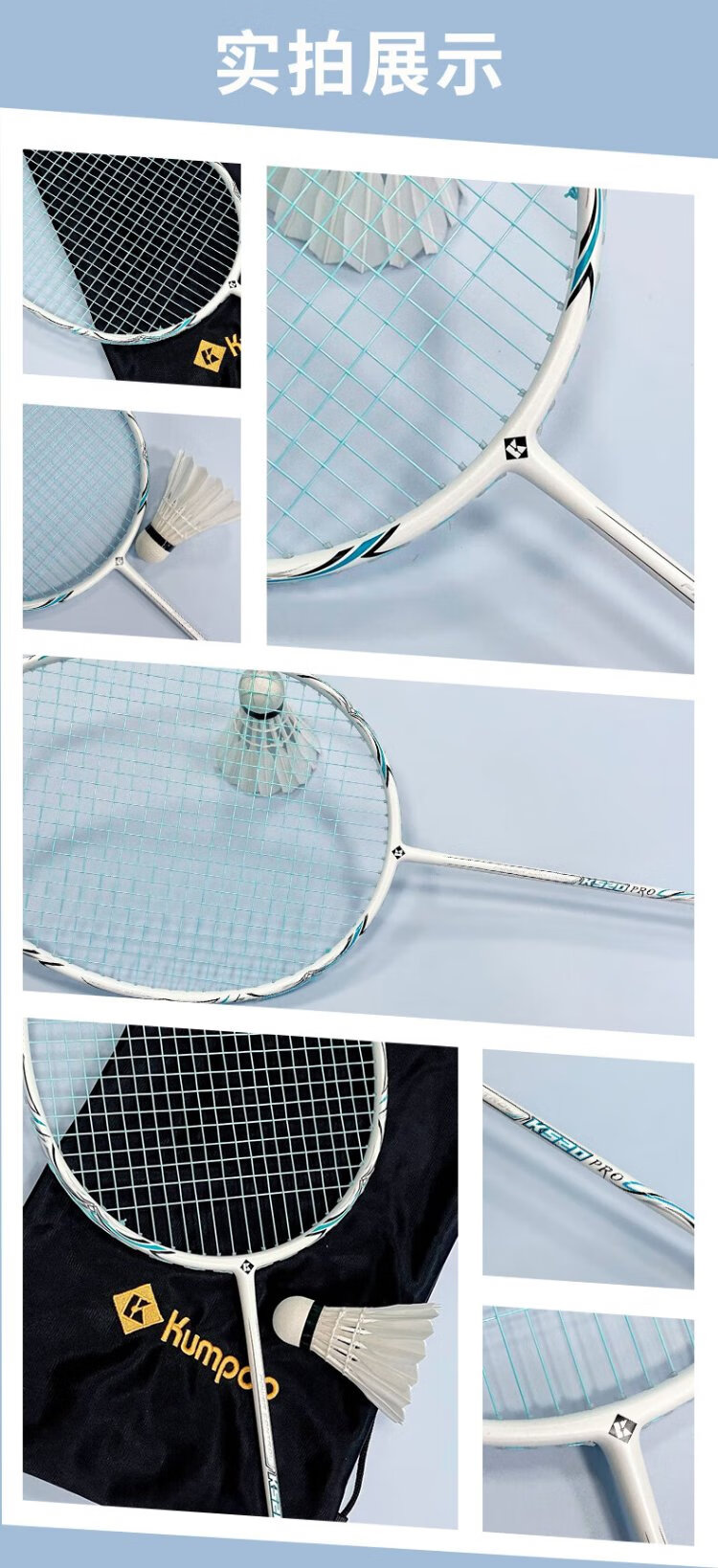 薰风(KUMPOO)羽毛球拍熏风k520pro全碳素超轻初学者单拍月白-冰蓝色羽线