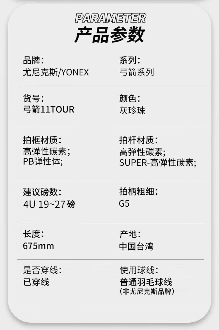 YONEX尤尼克斯羽毛球拍全碳素弓箭ARC11TOUR灰珍珠4U5已穿线26磅附手胶