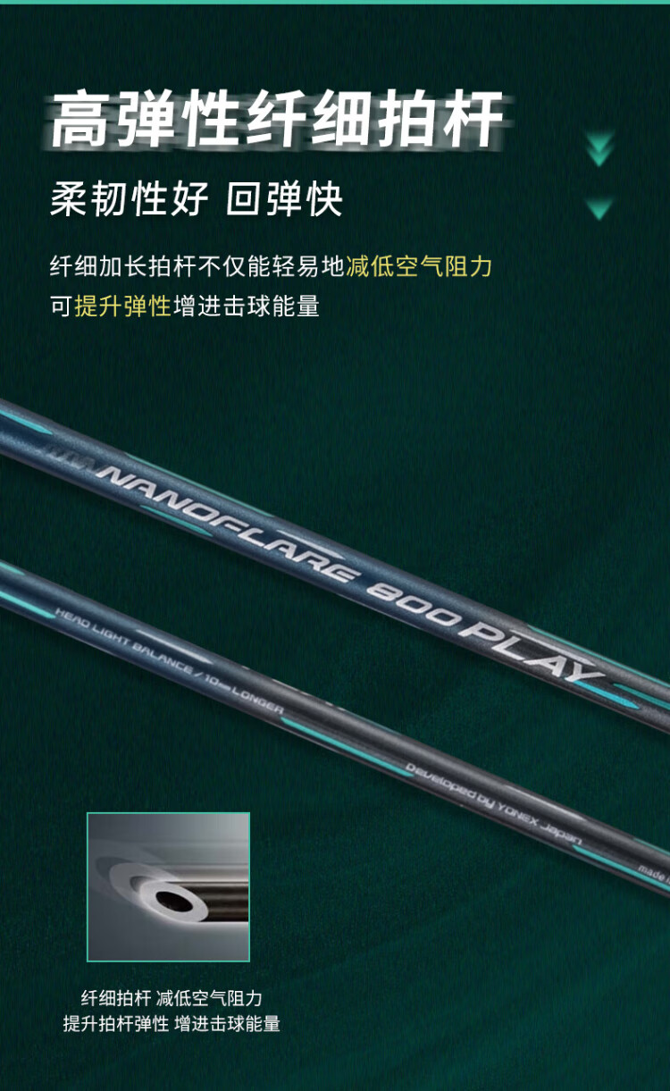 YONEX尤尼克斯羽毛球拍疾光800PRO球迷play版速度进攻单拍已穿线附手胶