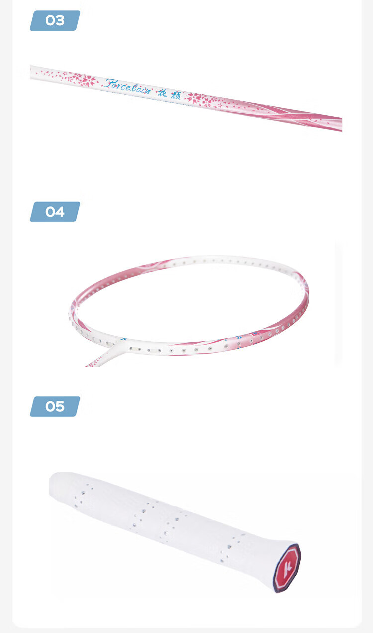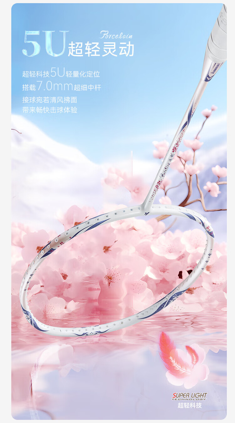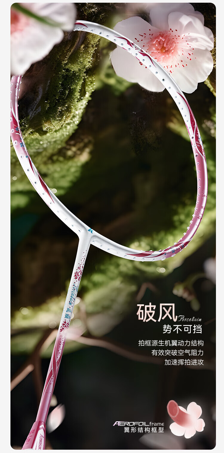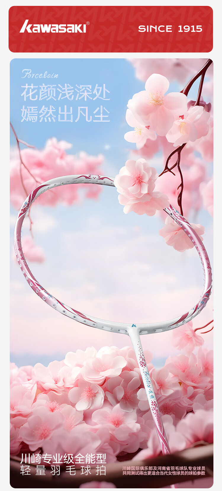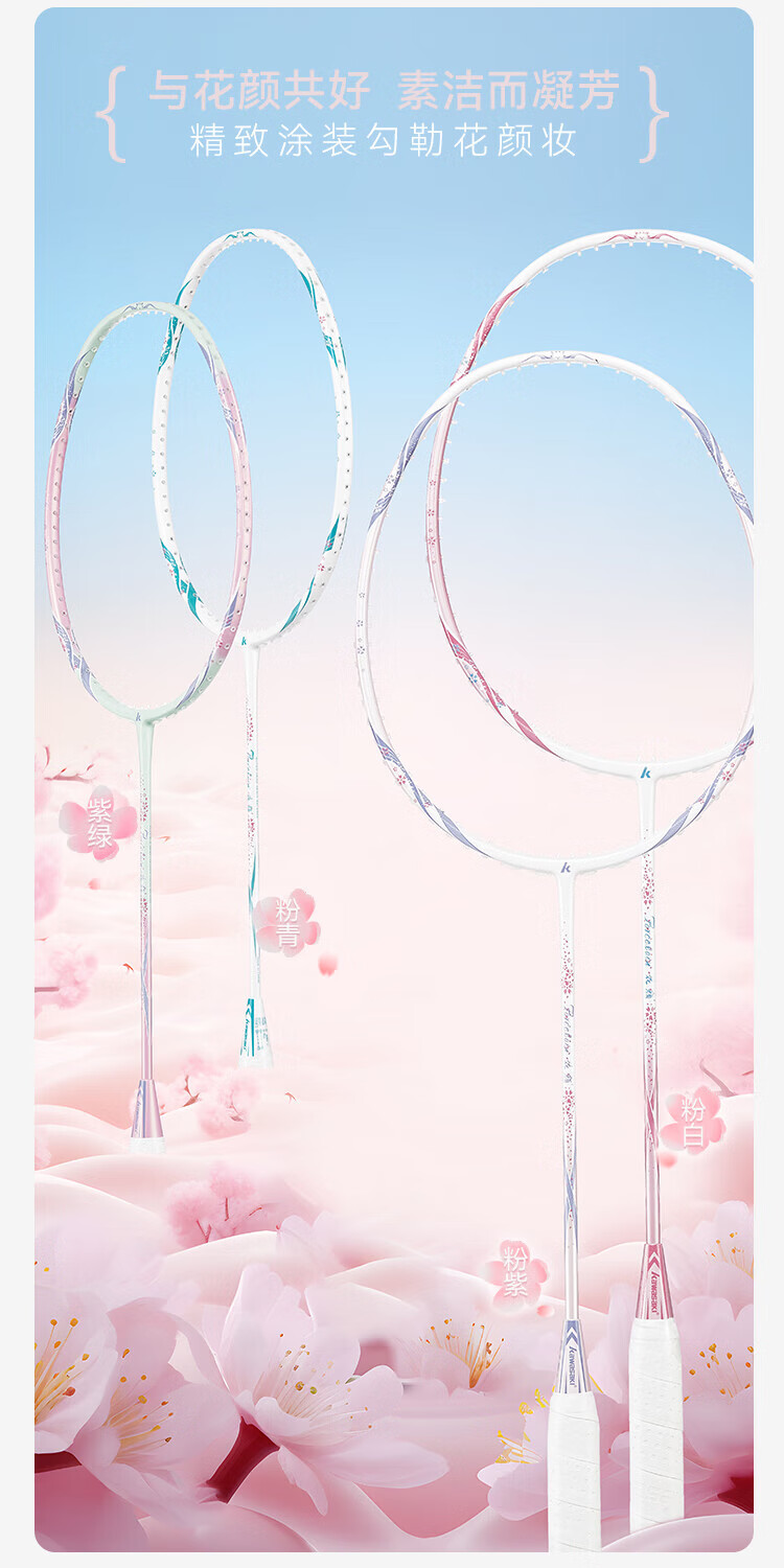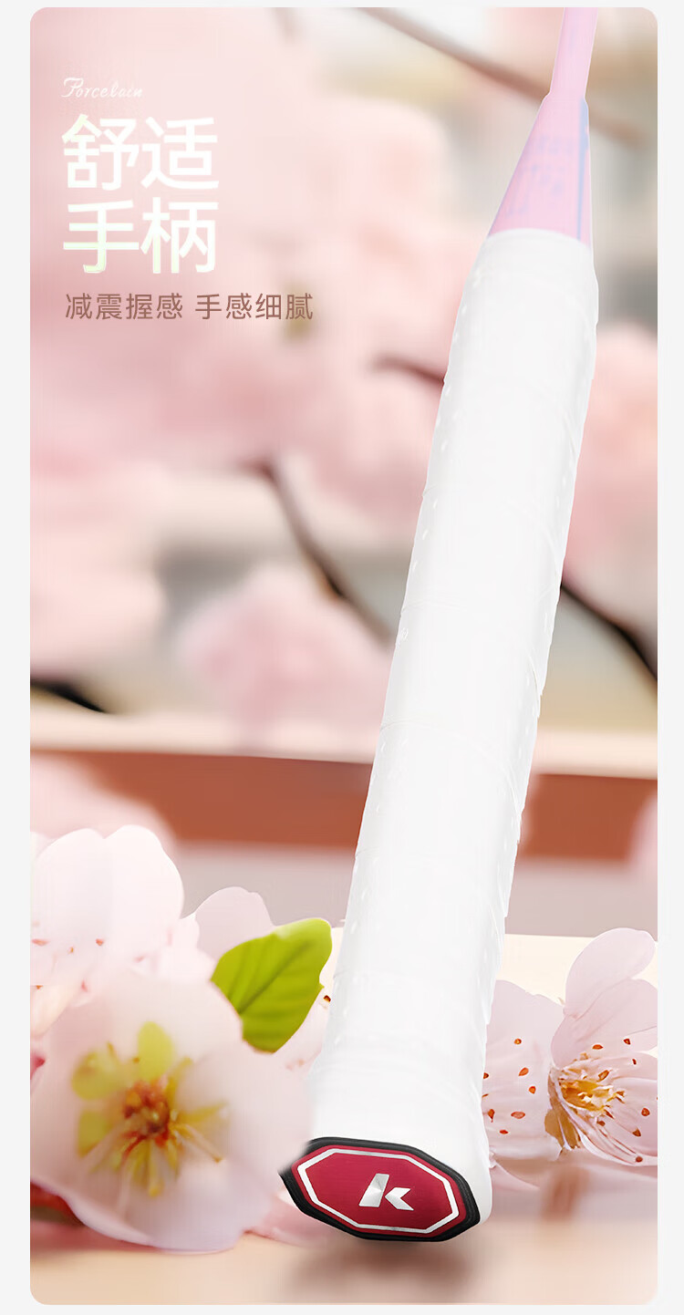 Kawasaki (KAWASAKI) badminton racket women's full carbon single racket 5U ultra-light blue and white porcelain series flower color second generation pink and white (strung)