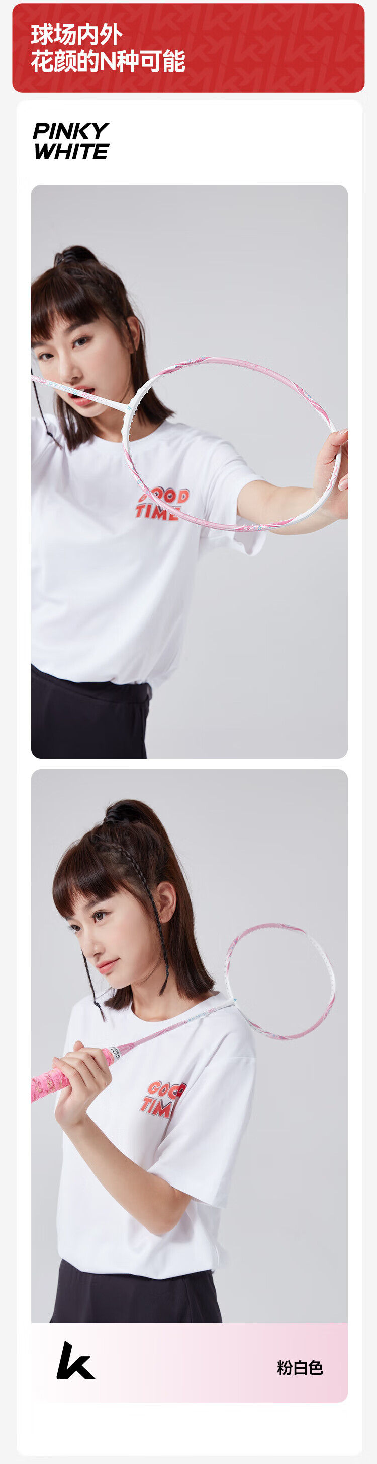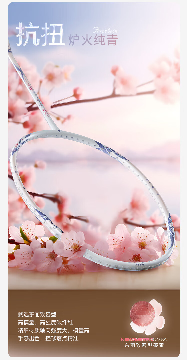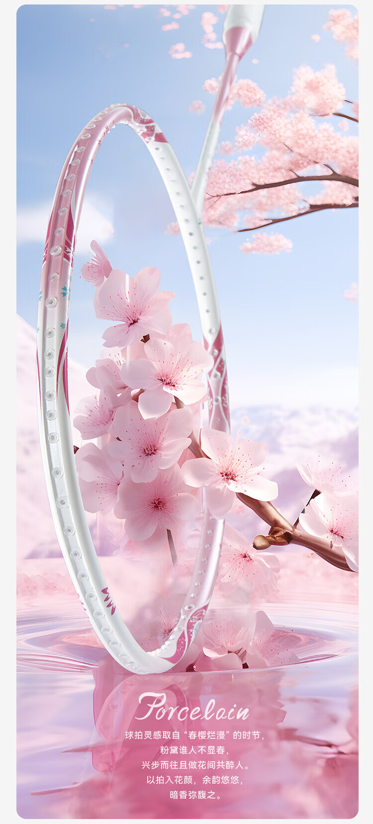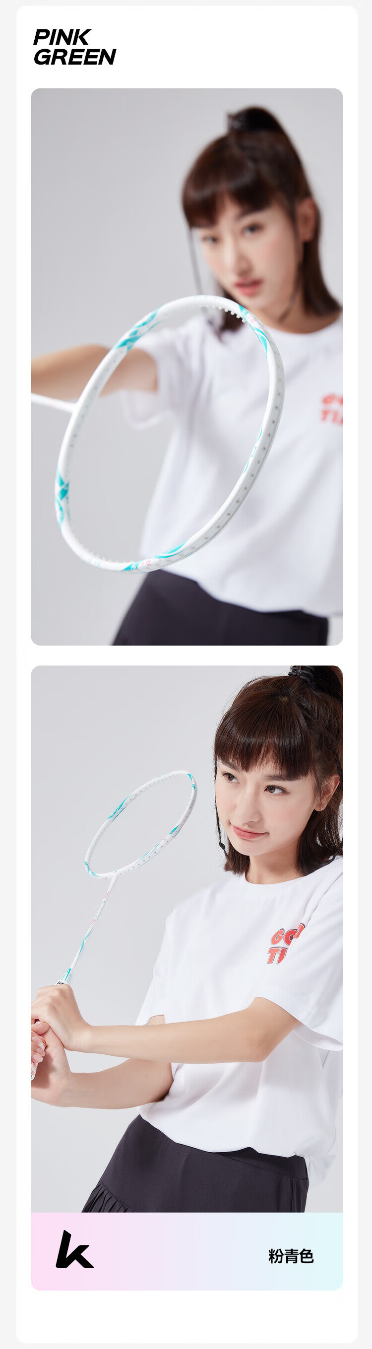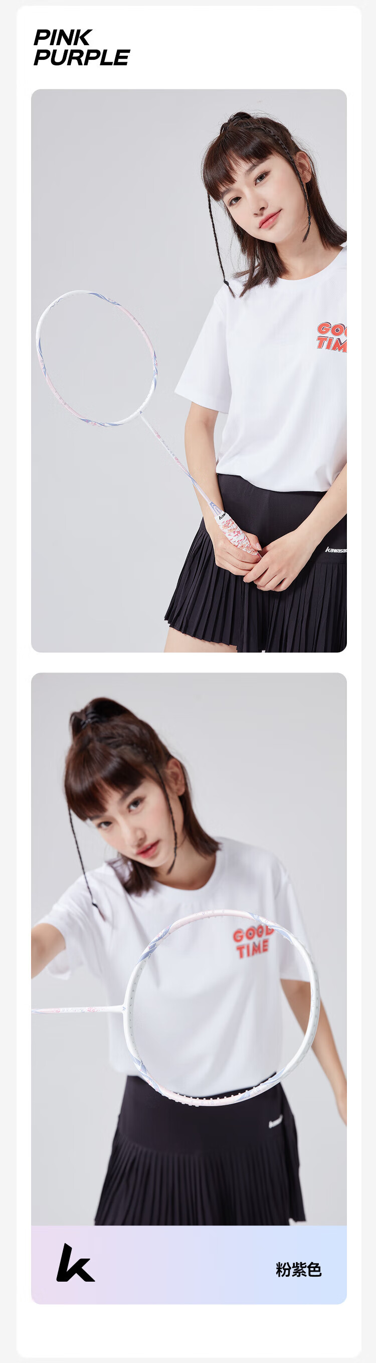 Kawasaki (KAWASAKI) badminton racket women's full carbon single racket 5U ultra-light blue and white porcelain series flower color second generation pink and white (strung)