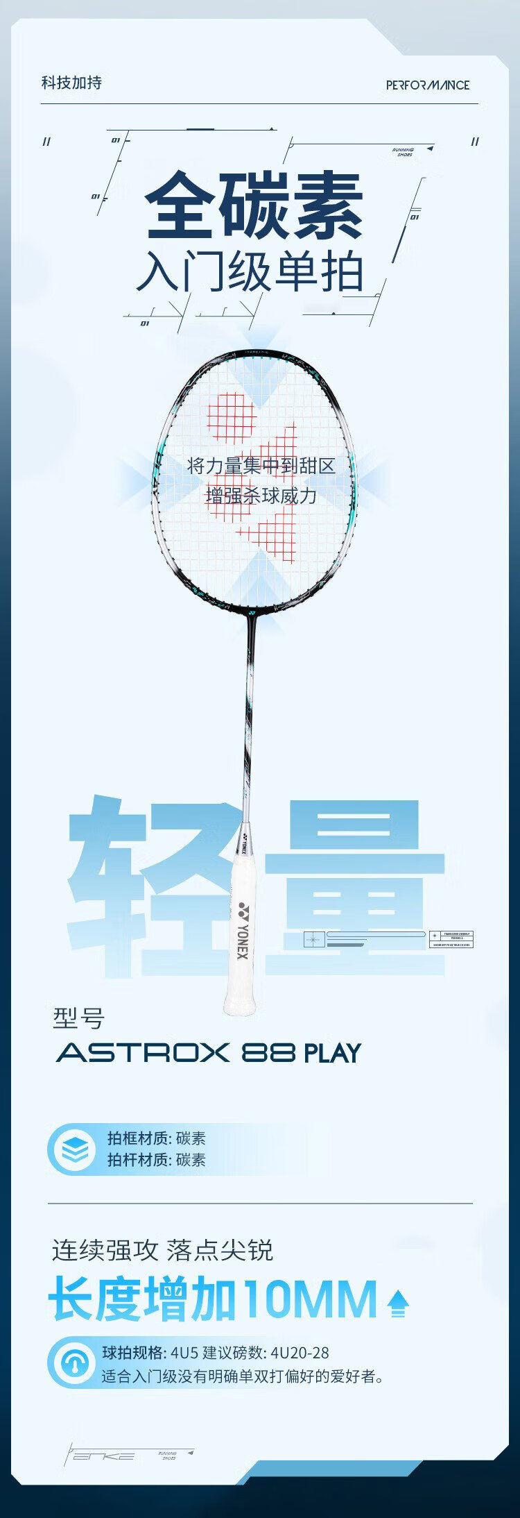 YONEX尤尼克斯羽毛球拍全碳素天斧进攻升级AX88PLAY黑银已穿线附手胶
