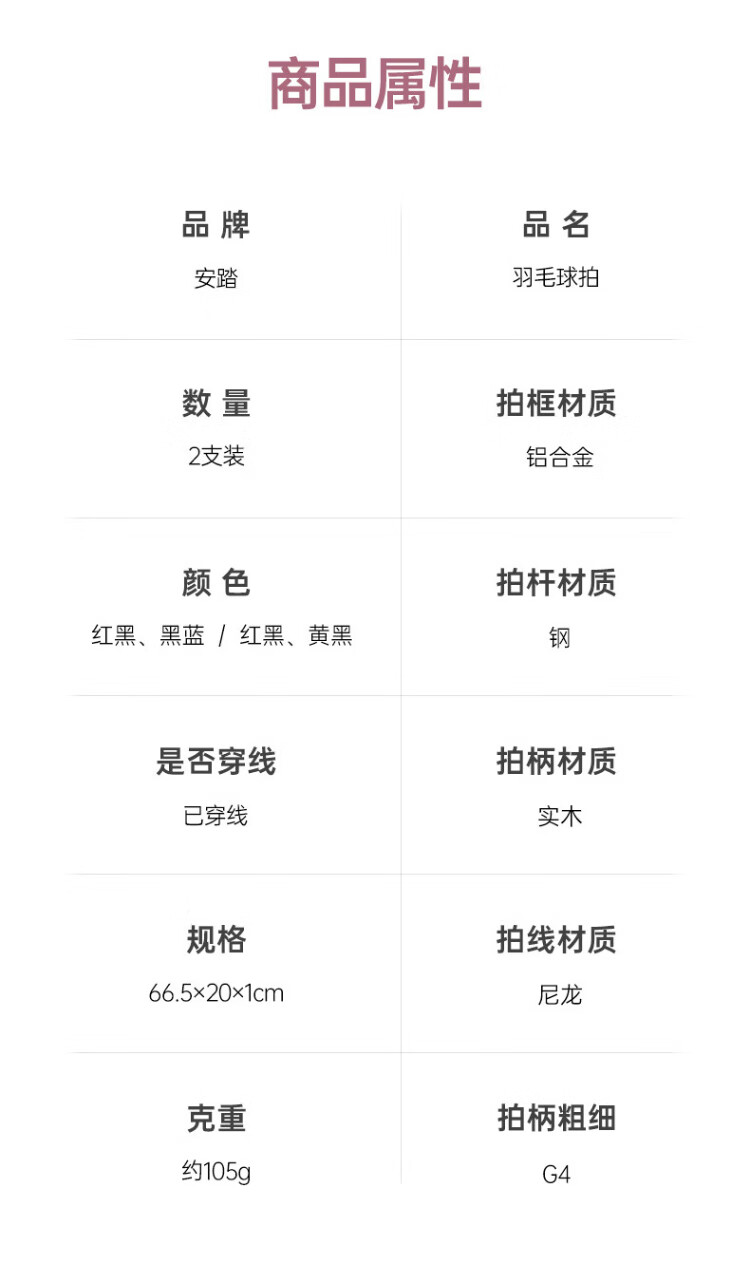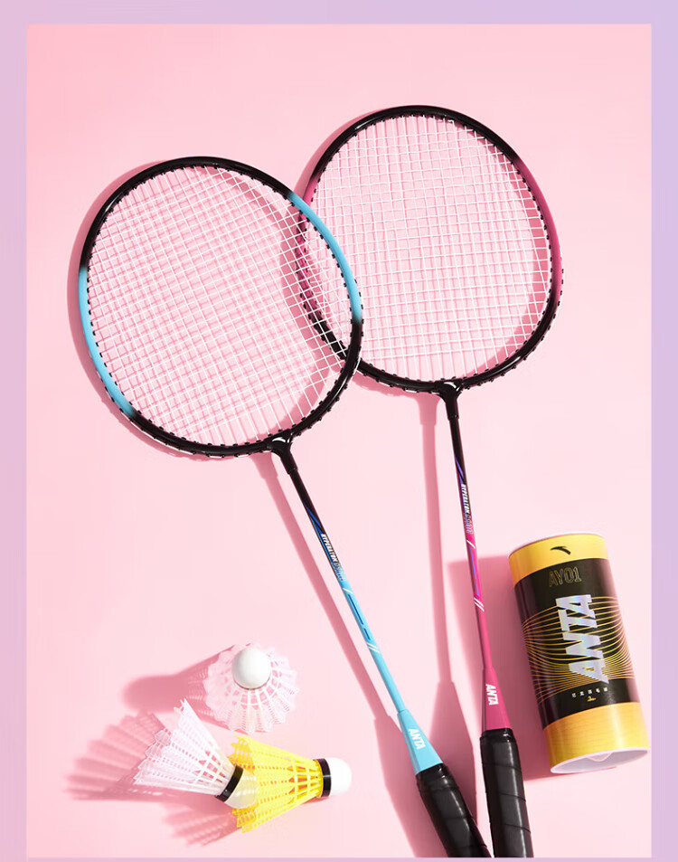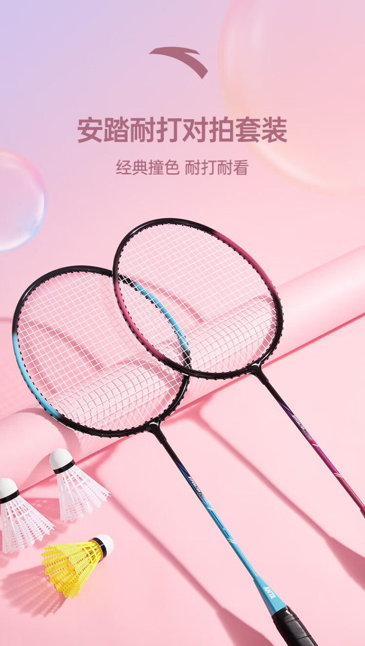 安踏羽毛球拍男女对拍耐打深凹槽比赛双拍球包尼龙球手胶套装