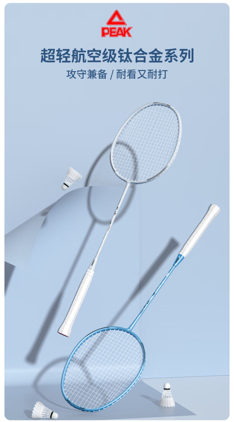 Peak badminton racket titanium alloy racket set durable adult student suit training competition racket 2 rackets blue/silver gray