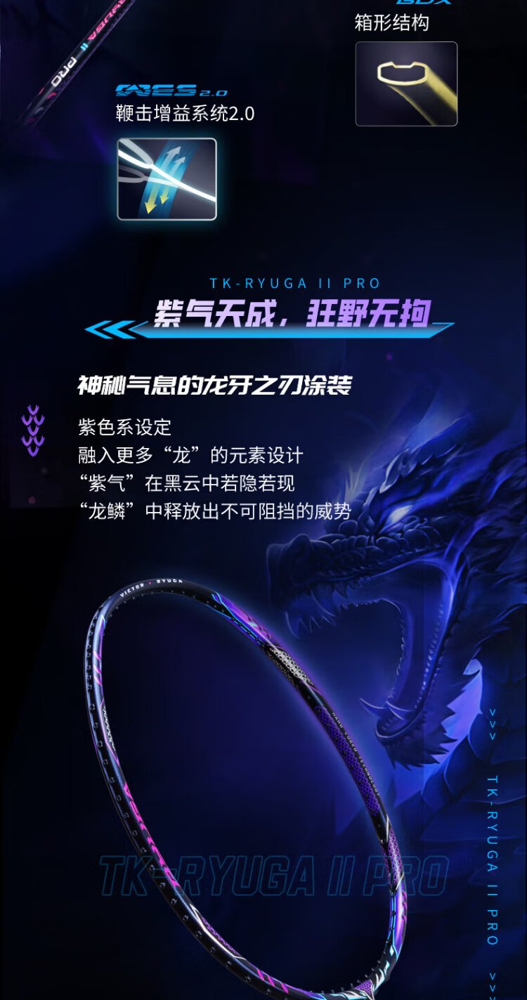 威克多(VICTOR)自营旗舰店羽毛球拍单拍专业进攻拍龙牙之刃二代 TK-RYUGA II PRO