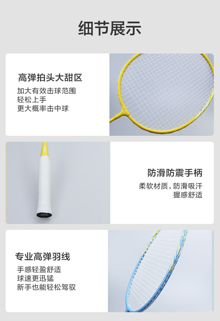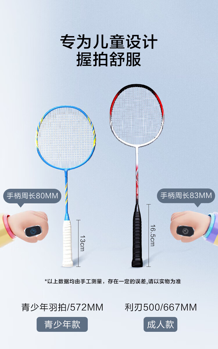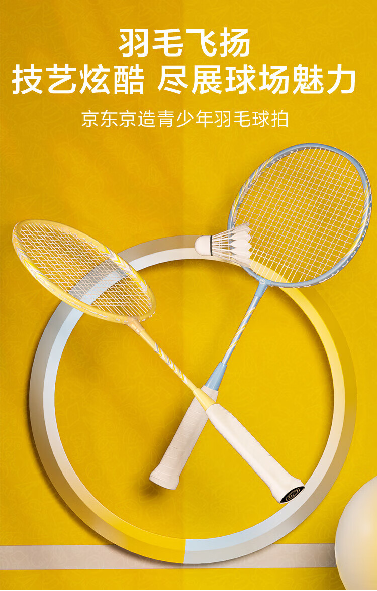 京东京造 青少年儿童羽毛球对拍6-13岁专业级训练羽毛球拍套装 轻盈耐打