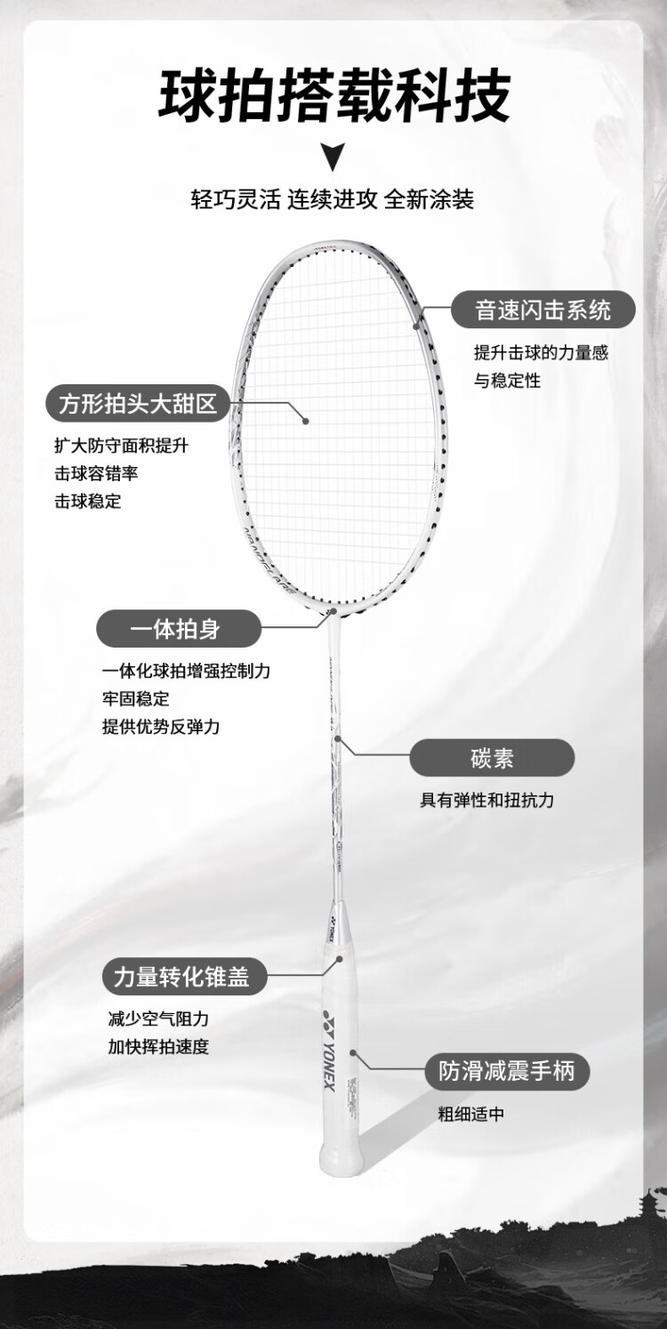 YONEX Yonex Badminton Racquet Flash Full Carbon Sonic Flash NFWEX Haobai 4U5 wears 26 pounds with hand glue