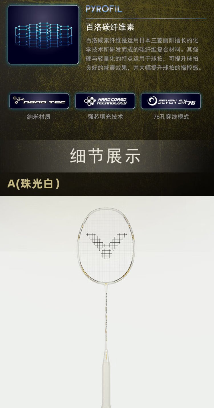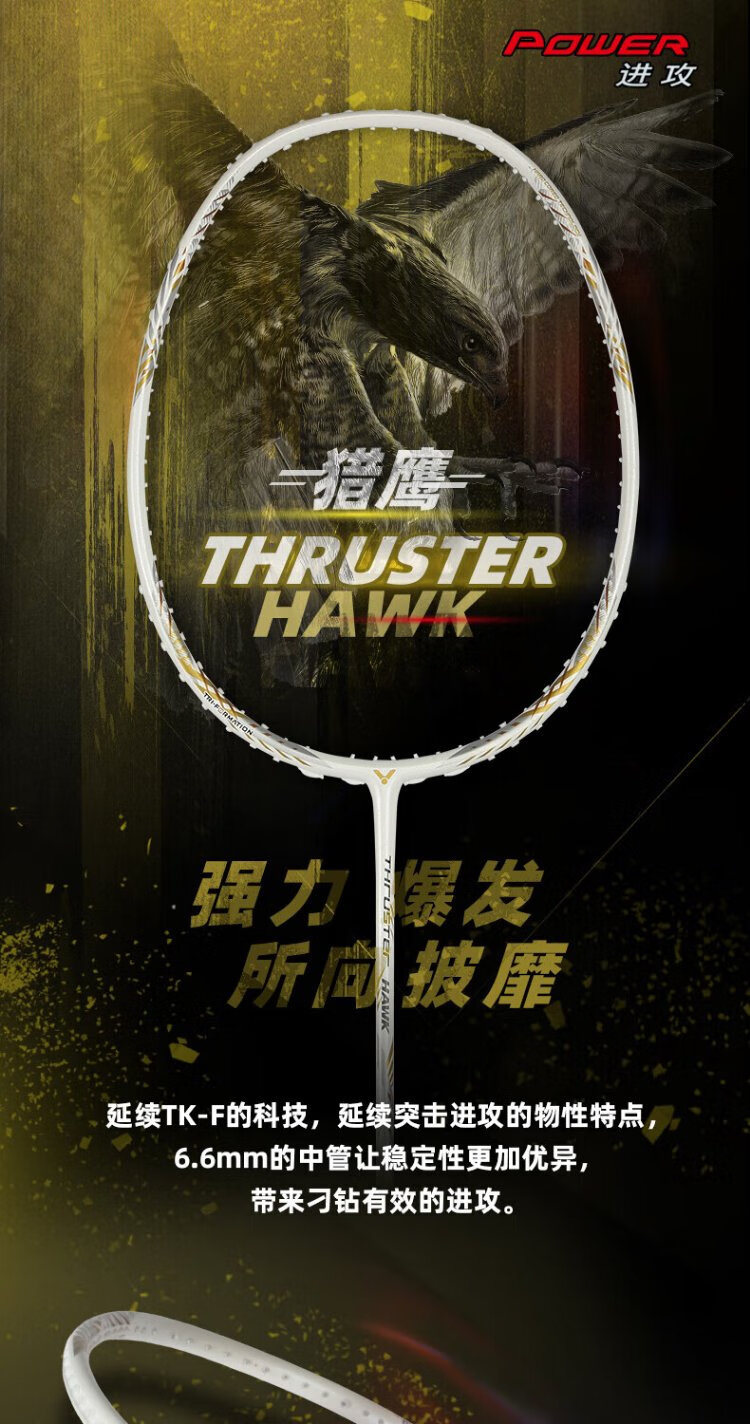 VICTOR威克多羽毛球拍碳素纤维单拍小隼TK-HAWK白 4U已穿线25磅附手胶