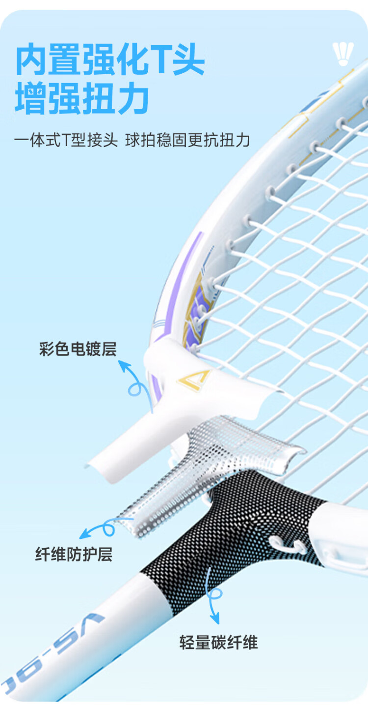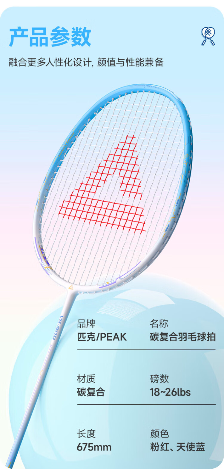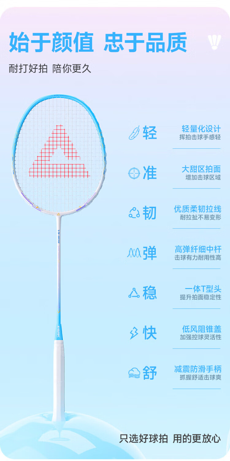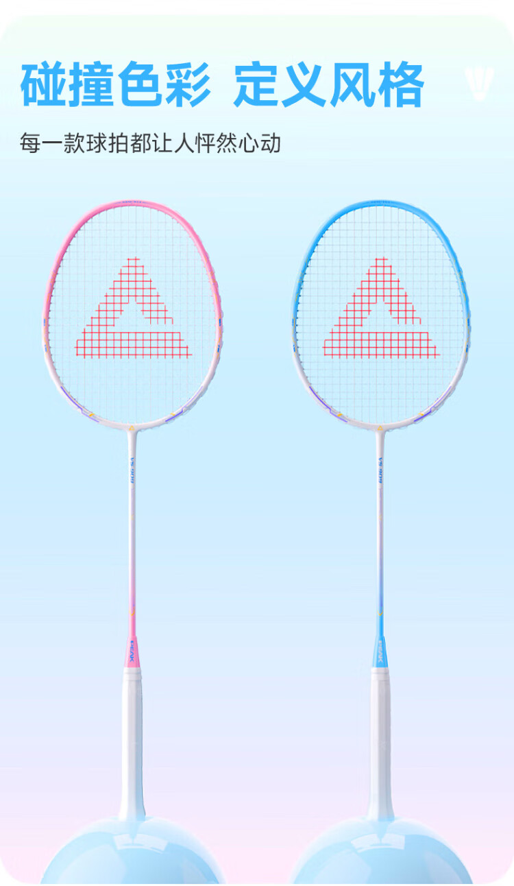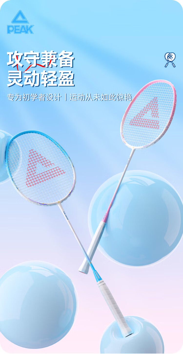 匹克羽毛球拍碳复合耐打成人学生套装训练比赛拍含羽毛球粉红/天使蓝