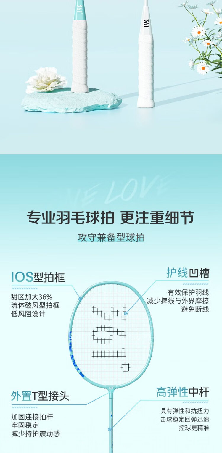 361°羽毛球拍对拍套装升级款深凹槽超轻耐打训练比赛双拍
