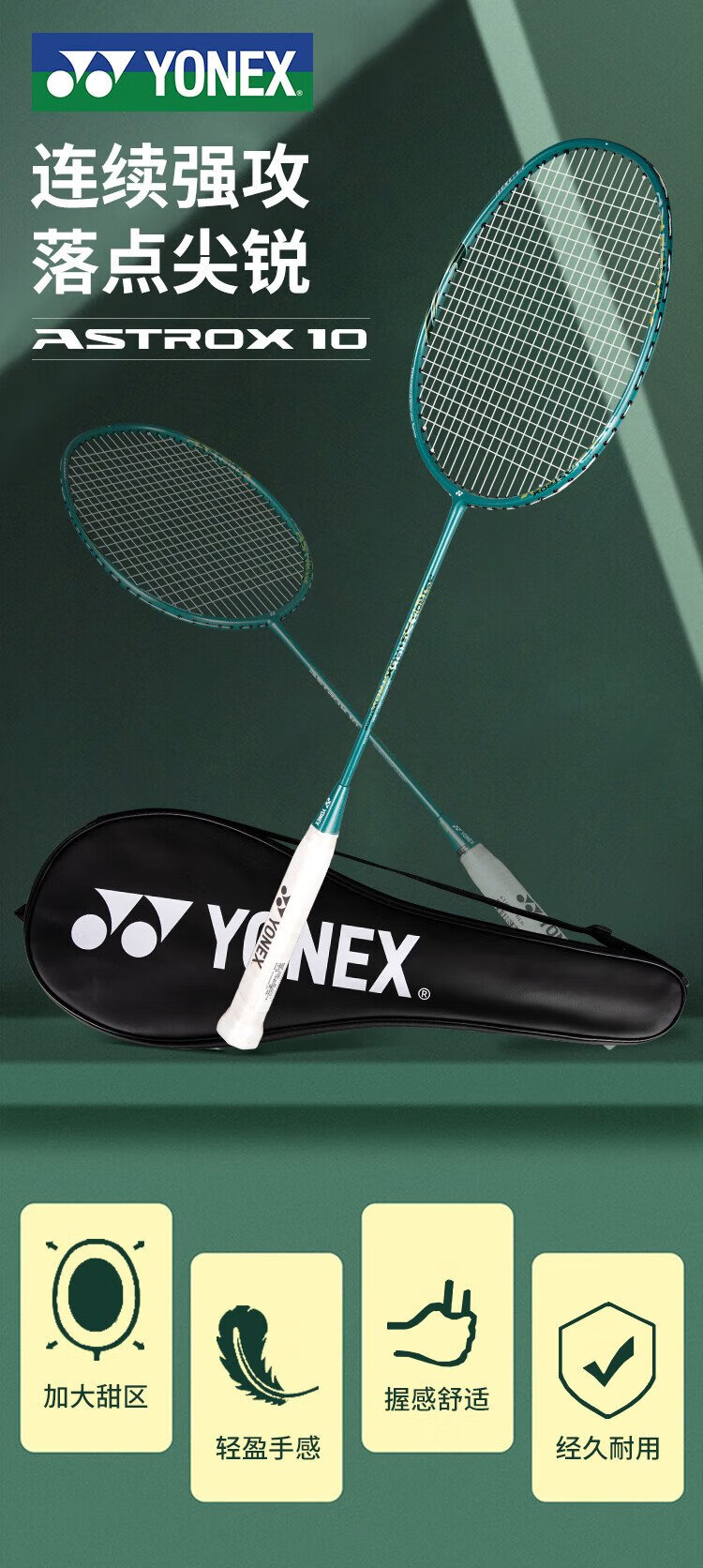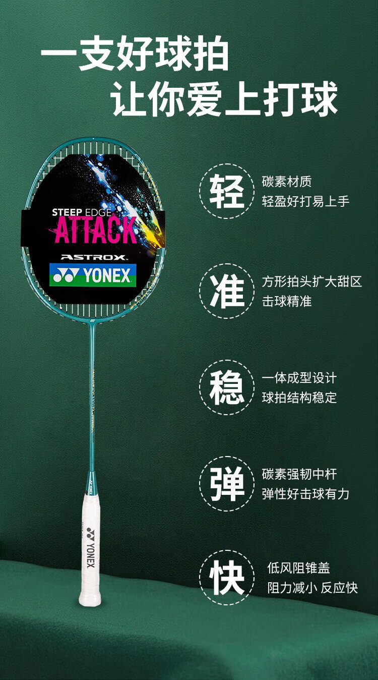YONEX尤尼克斯羽毛球拍天斧进攻高磅全碳素进阶AX10橄榄绿已穿线附手胶