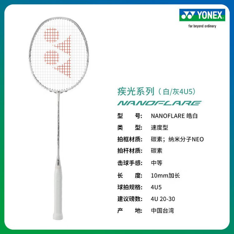 尤尼克斯(YONEX)羽毛球拍疾光皓白NF-WEX疾光小白切全碳素速攻进阶单拍【空拍】