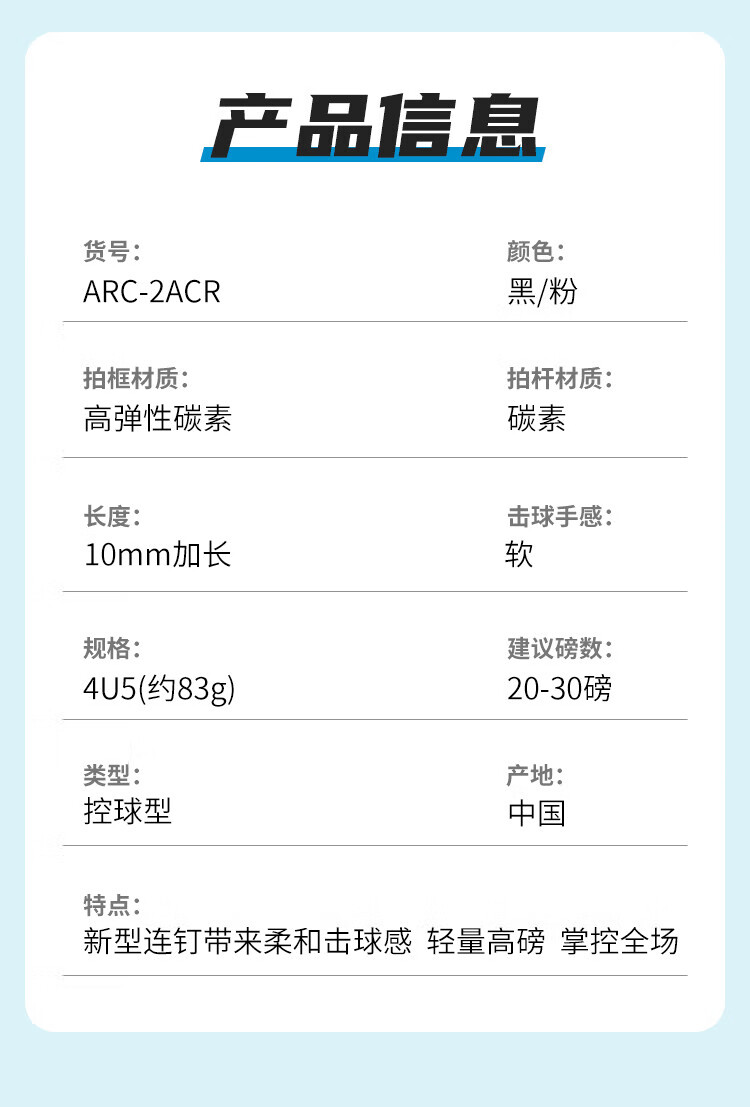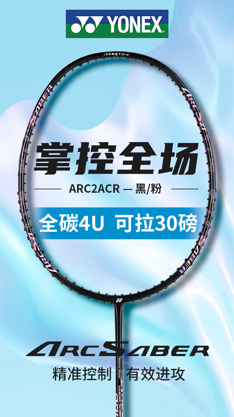 YONEX尤尼克斯羽毛球拍全碳素均衡弓箭ARC2黑粉4U5已穿25磅附手胶