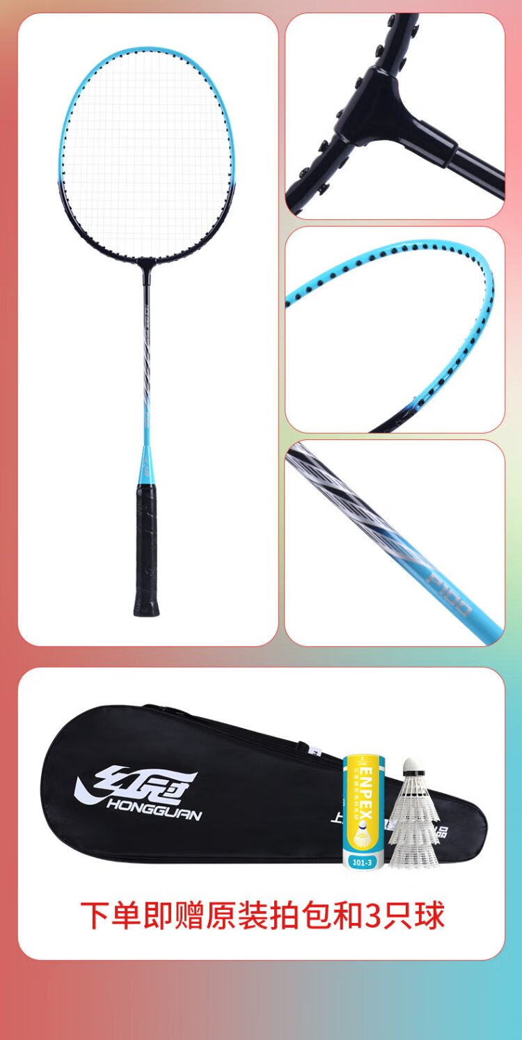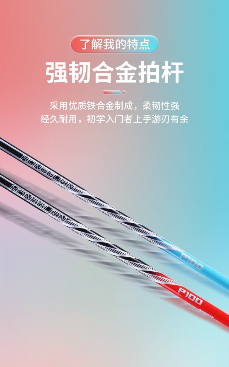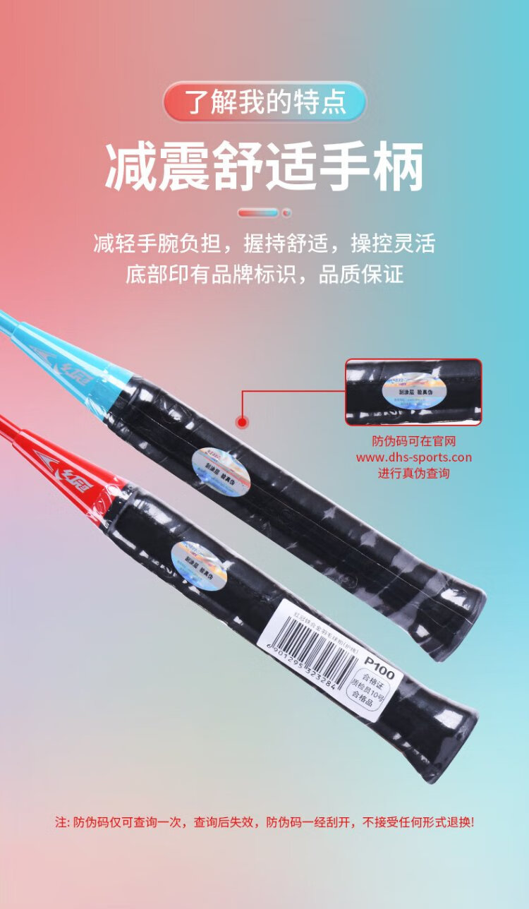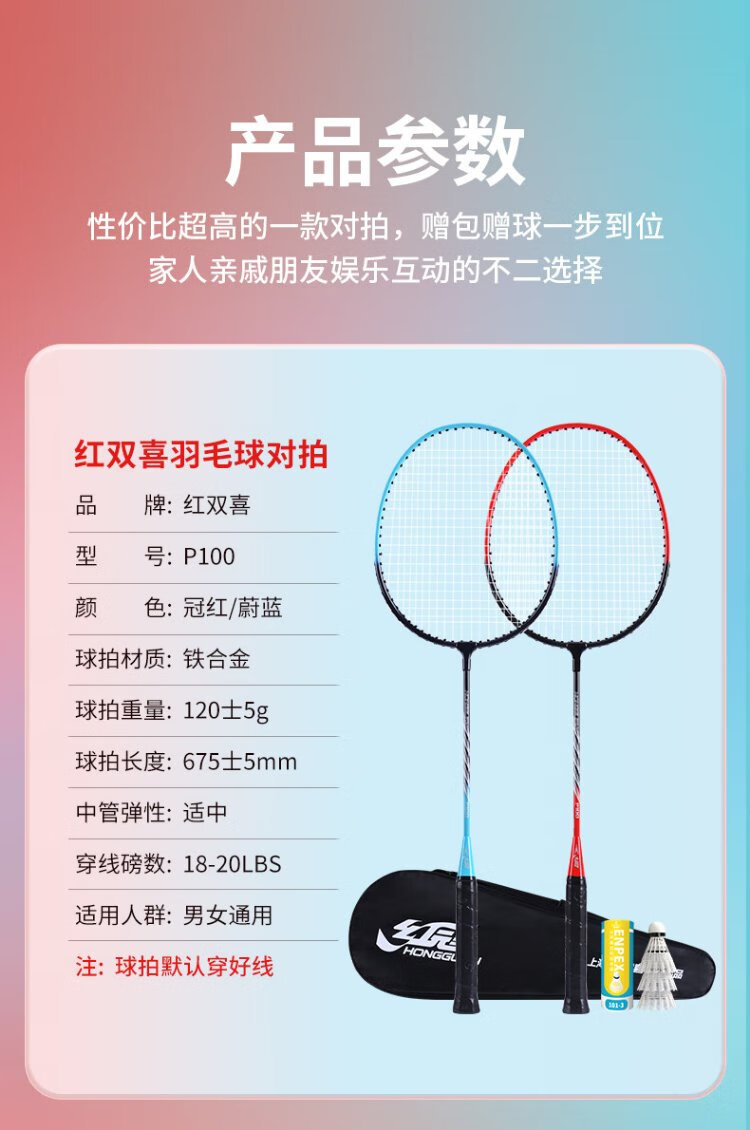 红双喜(DHS)羽毛球拍对拍套装训练比赛成人儿童学生防磨深凹槽羽拍P100 附3球