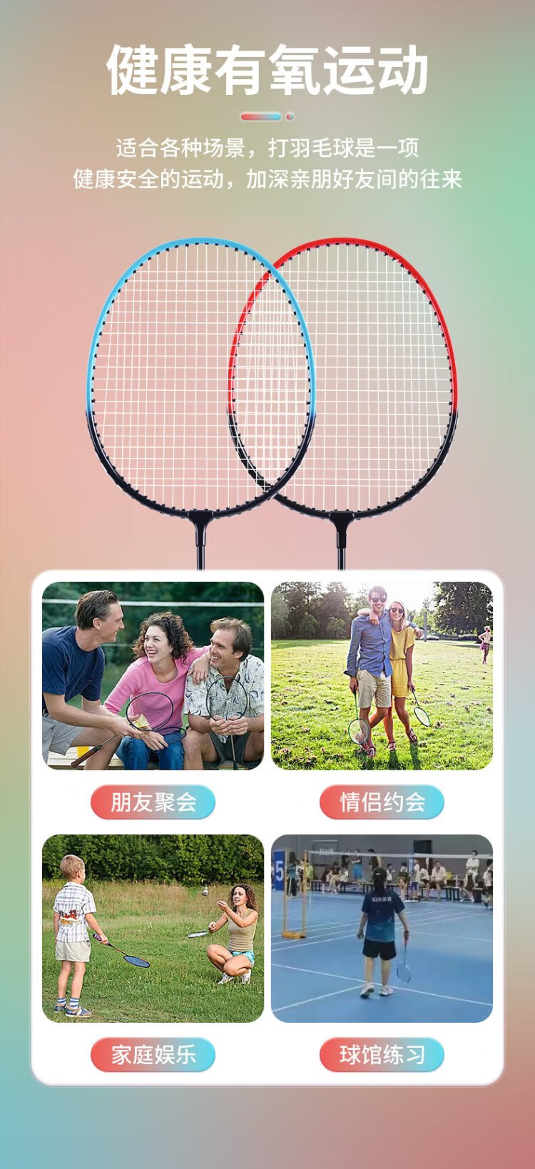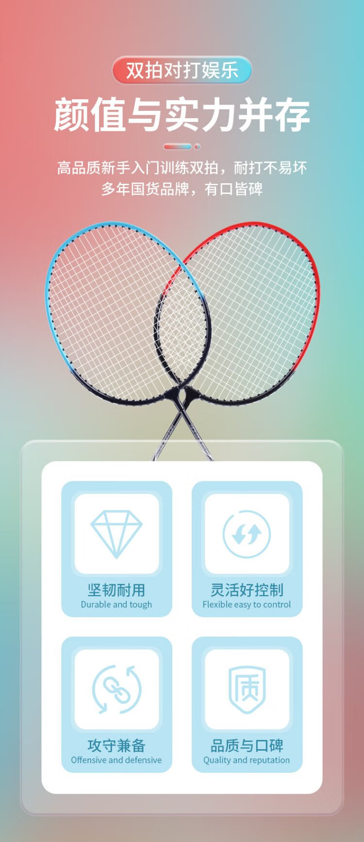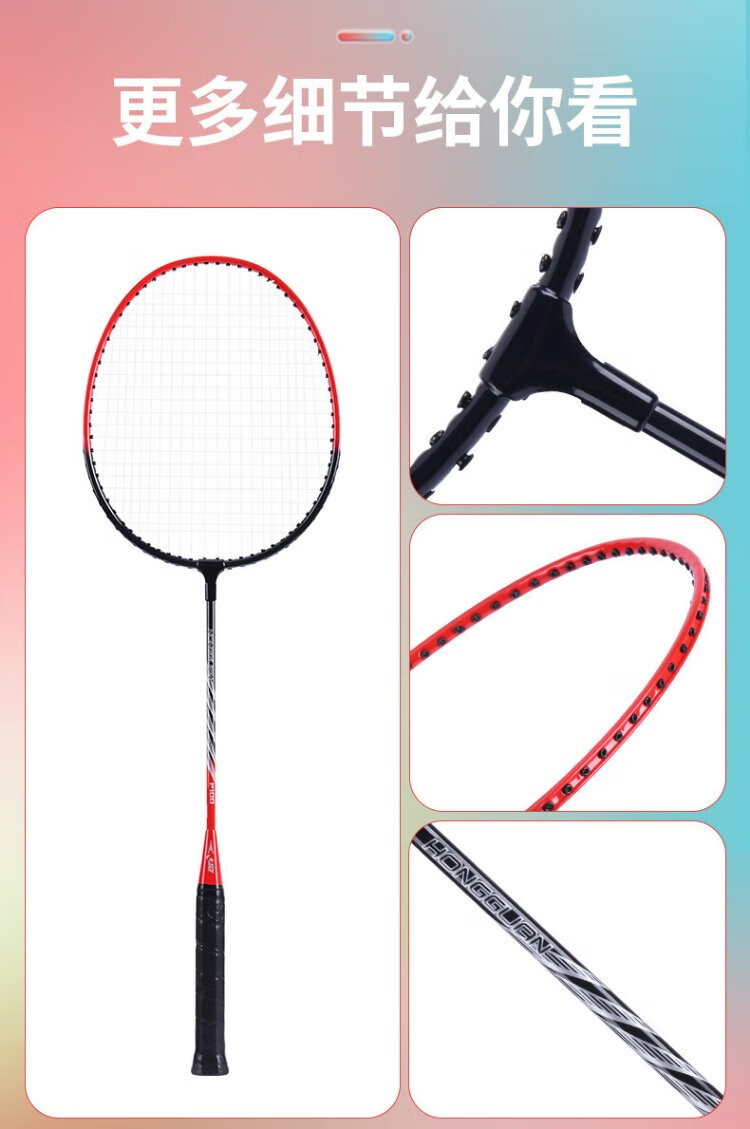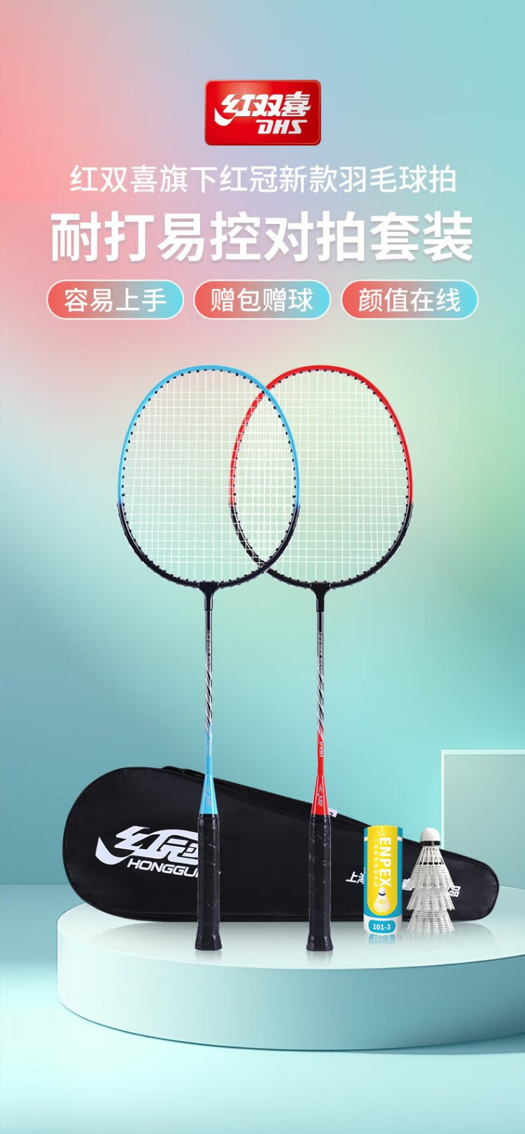 红双喜(DHS)羽毛球拍对拍套装训练比赛成人儿童学生防磨深凹槽羽拍P100 附3球