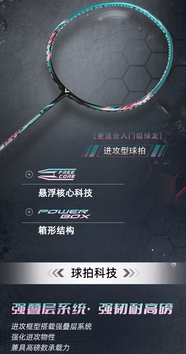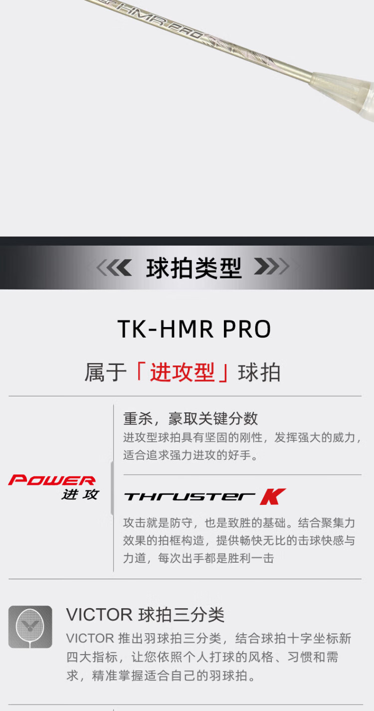 VICTOR威克多羽毛球拍大铁锤碳素纤维单拍TK-HMR PRO琉璃金4U已穿线24磅
