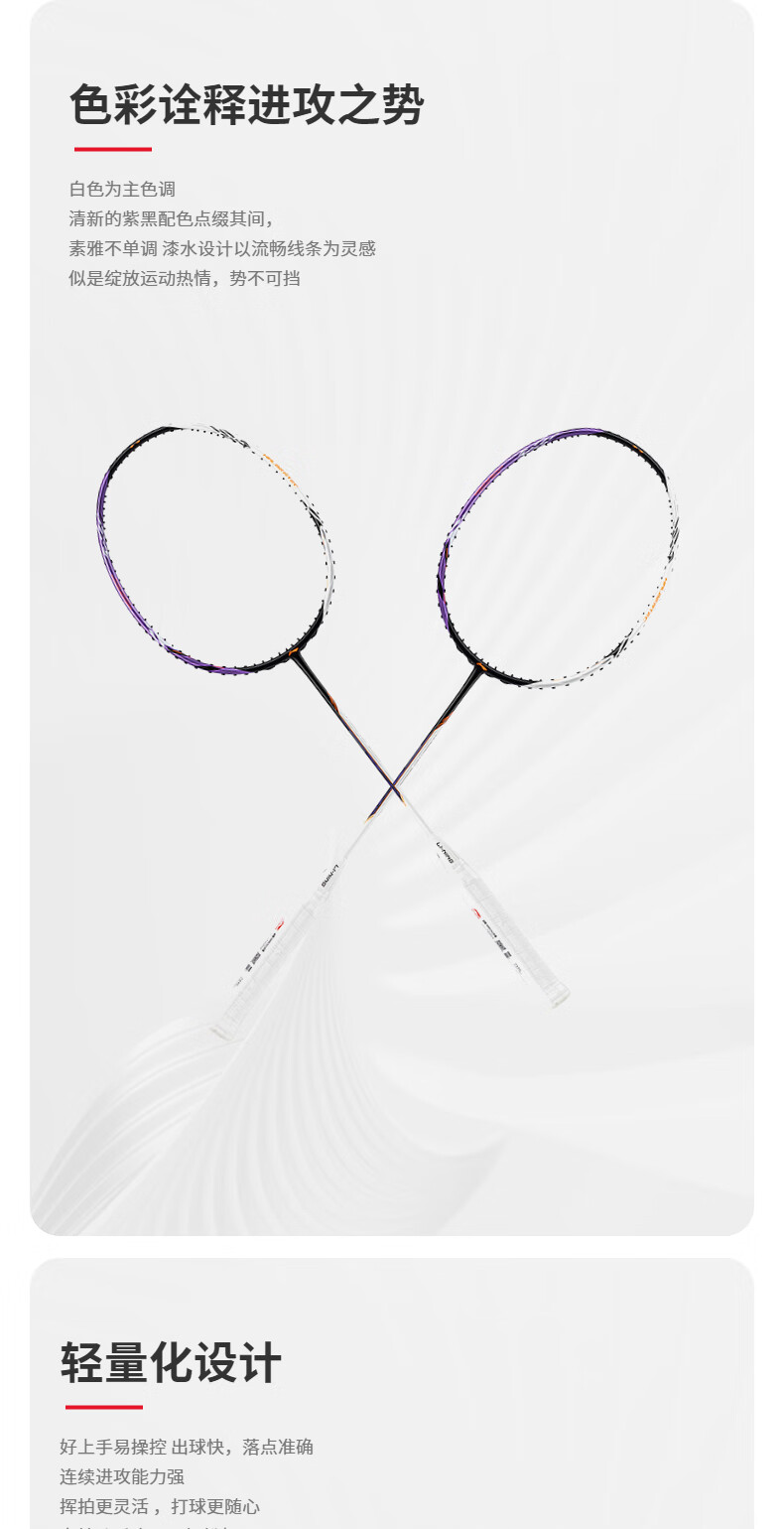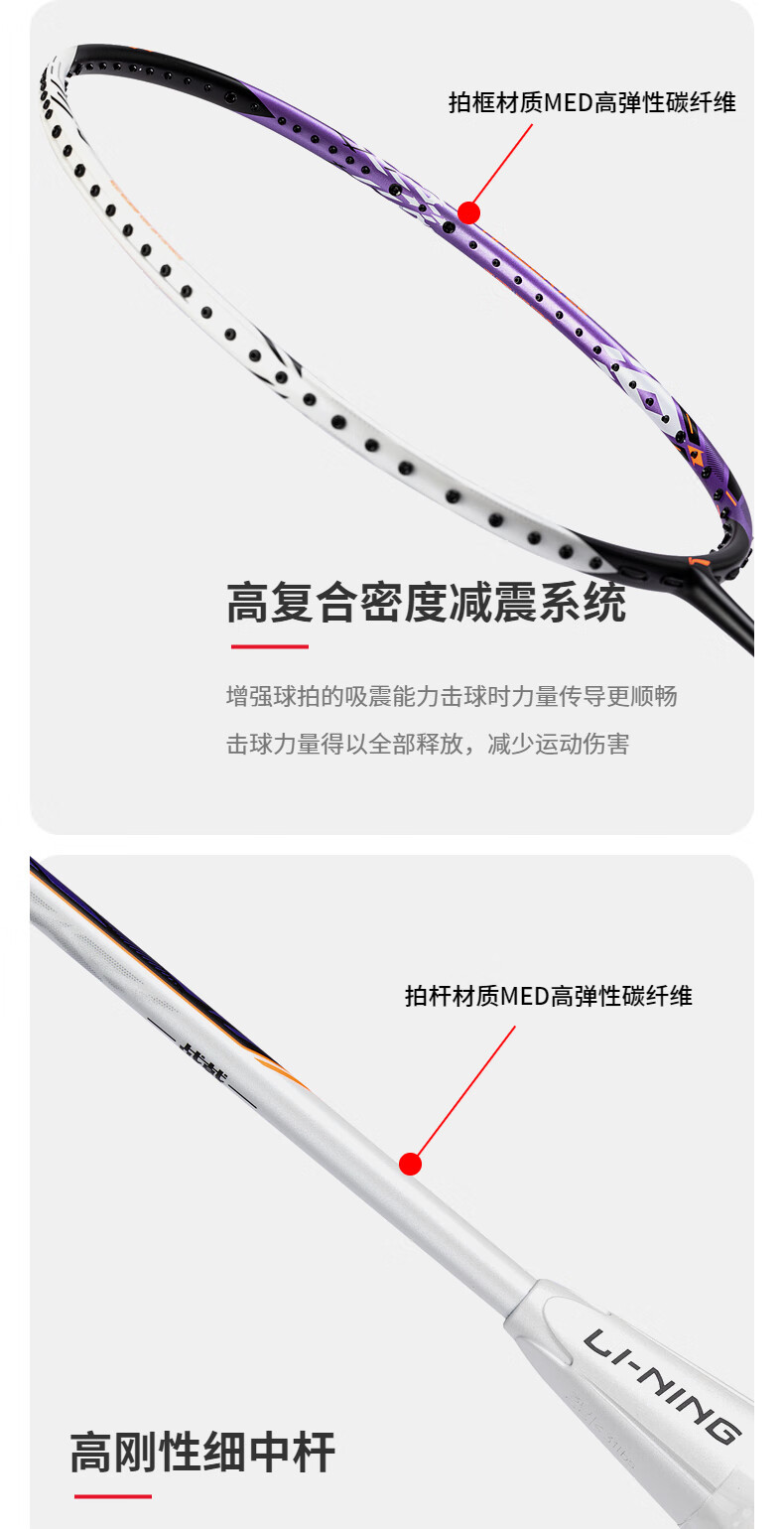 李宁羽毛球拍专业级全碳素战戟5000控制型球拍4U单拍无线AYPT373