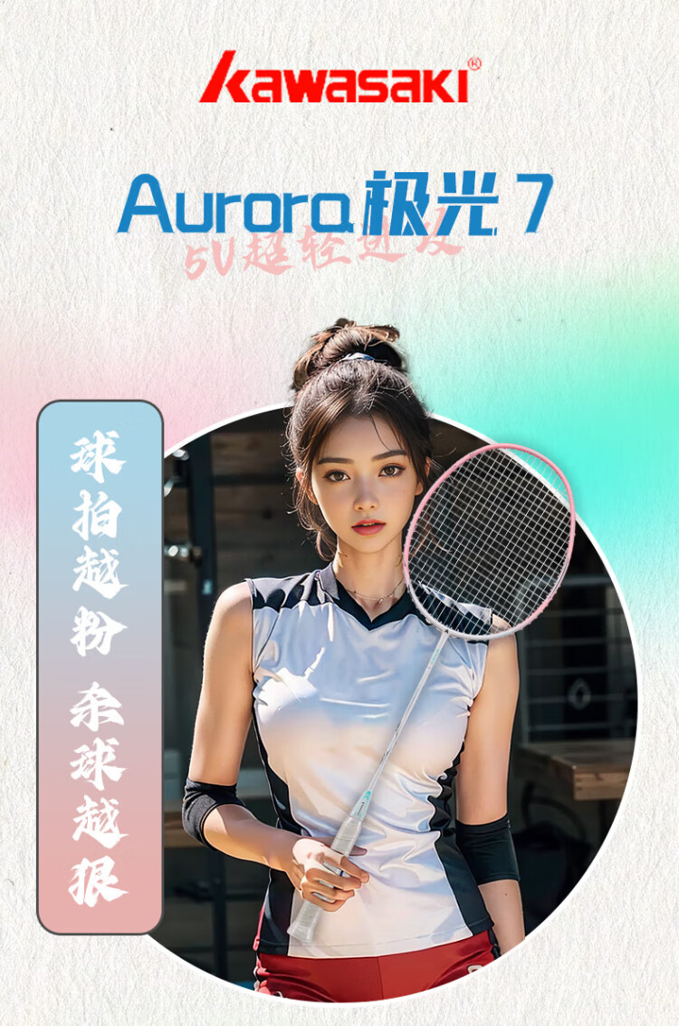 川崎羽毛球拍极光7极光蓝全碳素进攻超轻高磅学生训练单拍已穿线24磅