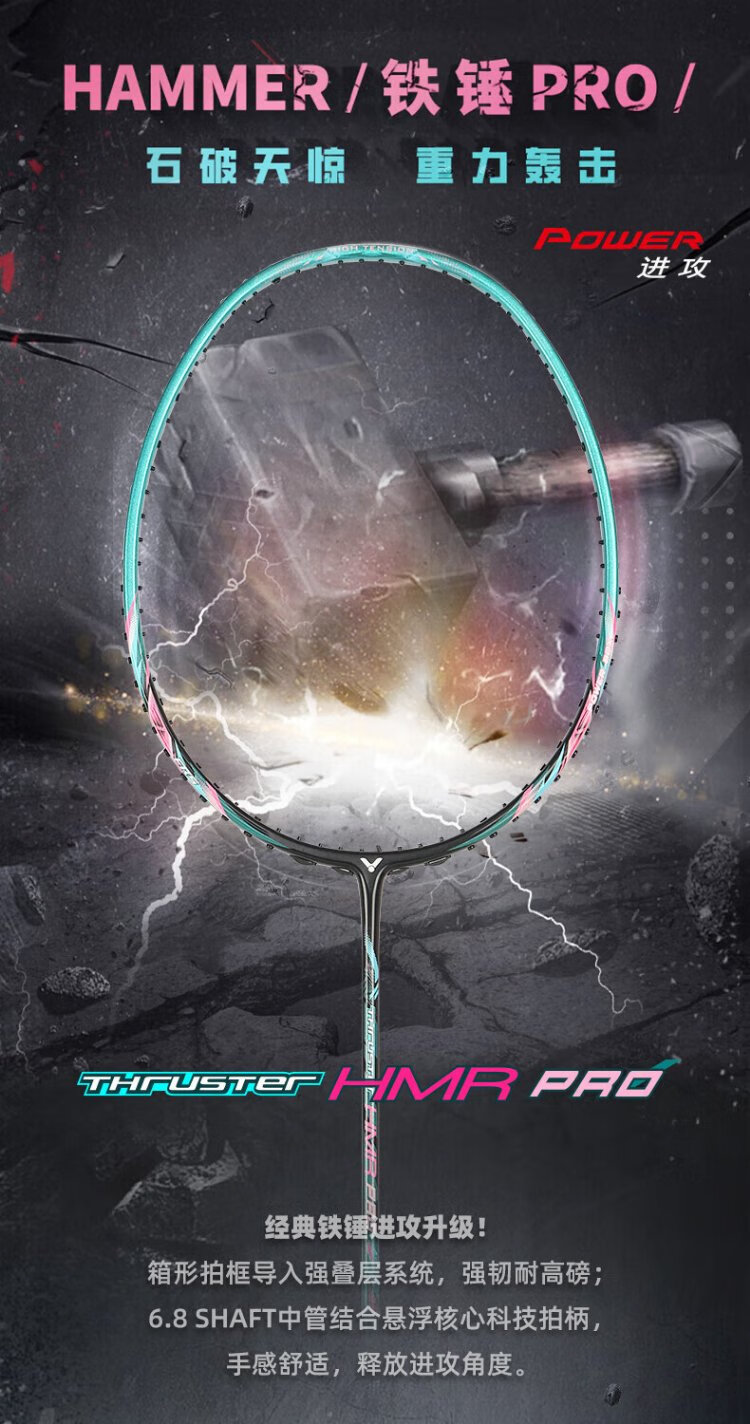 VICTOR威克多羽毛球拍大铁锤碳素纤维单拍TK-HMR PRO松石绿5U已穿线27磅