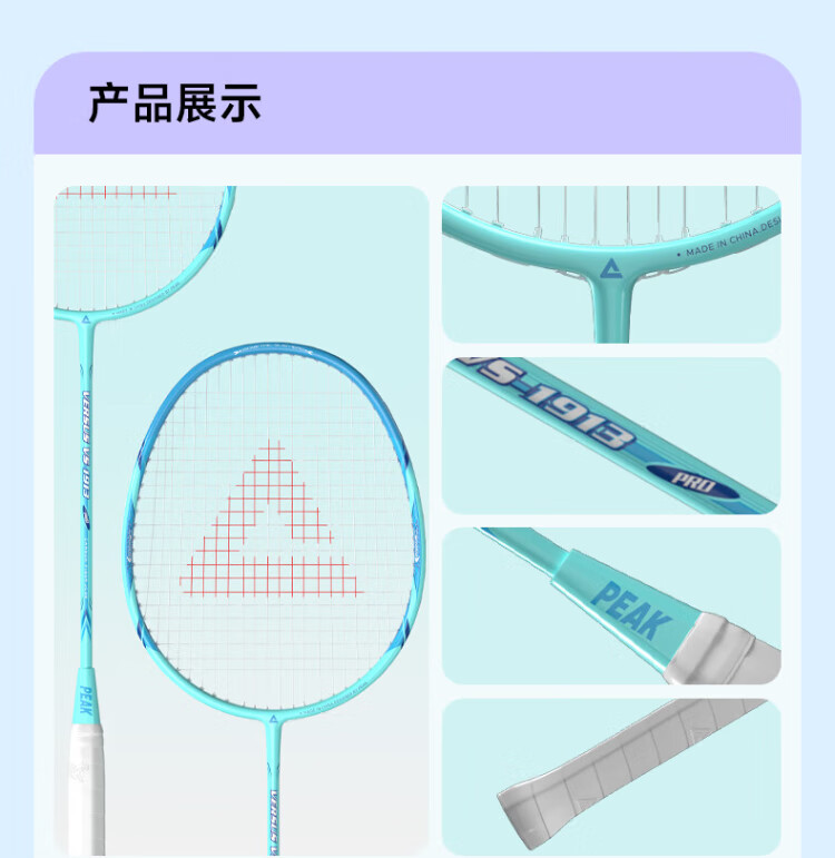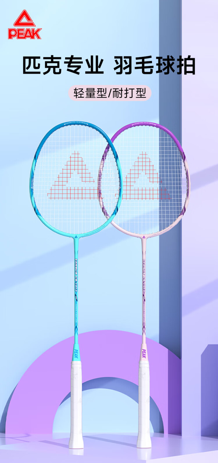 匹克羽毛球拍对拍专业级碳复合超轻耐打成人儿童套装双拍1913PRO蓝粉