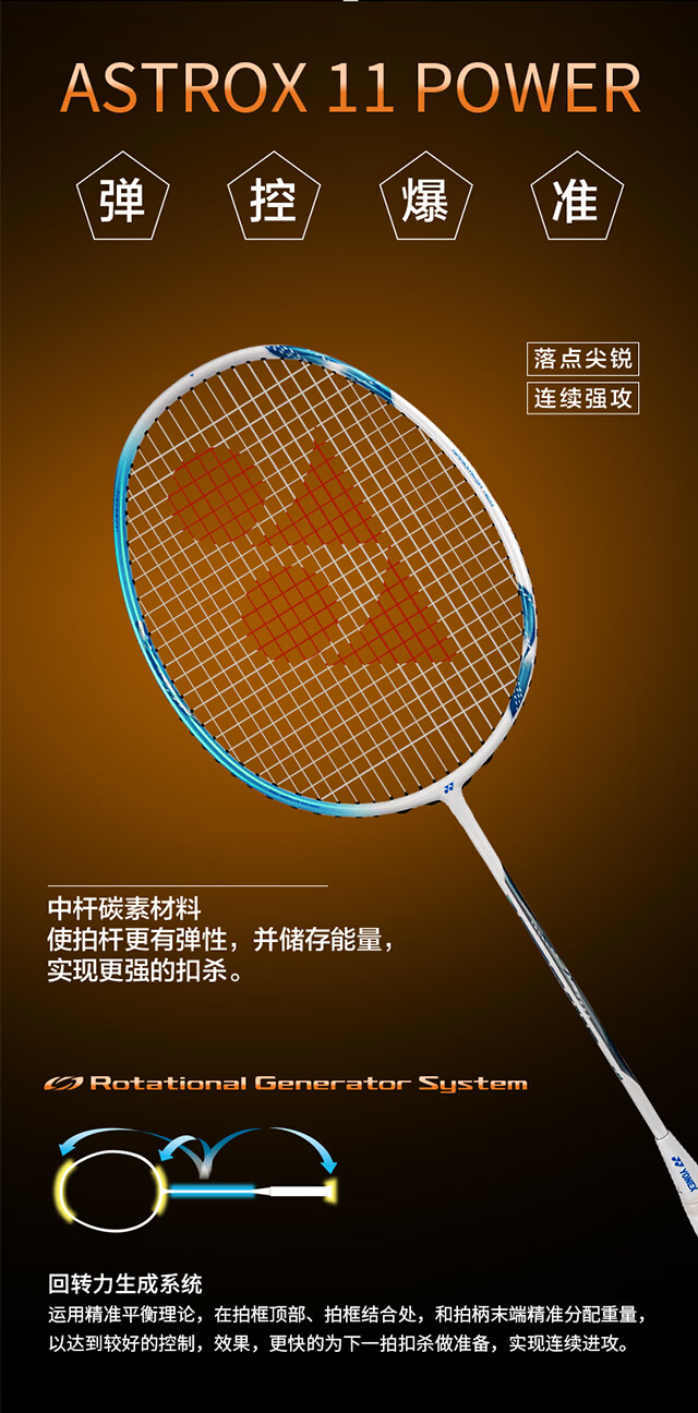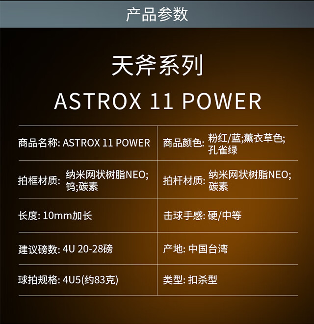 YONEX/尤尼克斯 天斧系列 ASTROX 11 POWER 碳素轻量羽毛球拍 礼盒套装 薰衣草色(成品拍)4U5