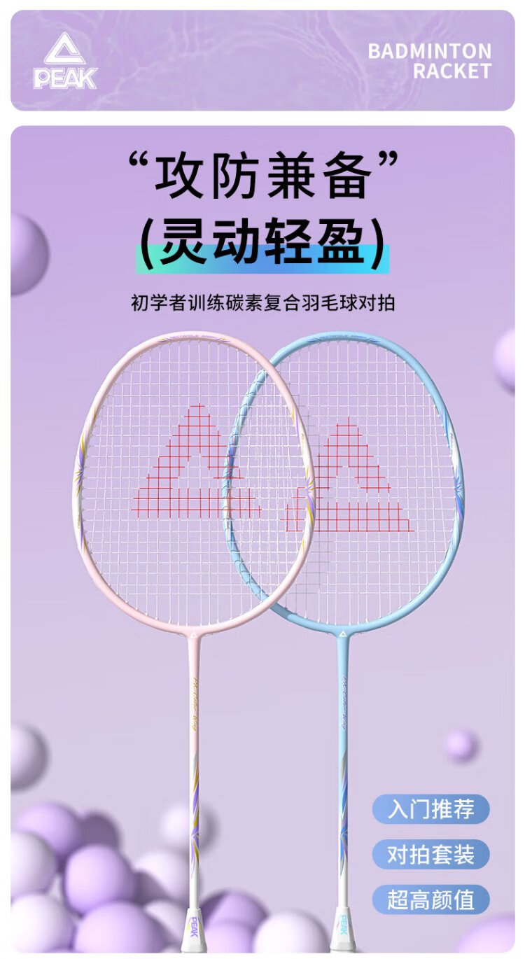 匹克羽毛球拍对拍碳复合超轻耐打成人儿童专业比赛训练球拍彩翼双拍